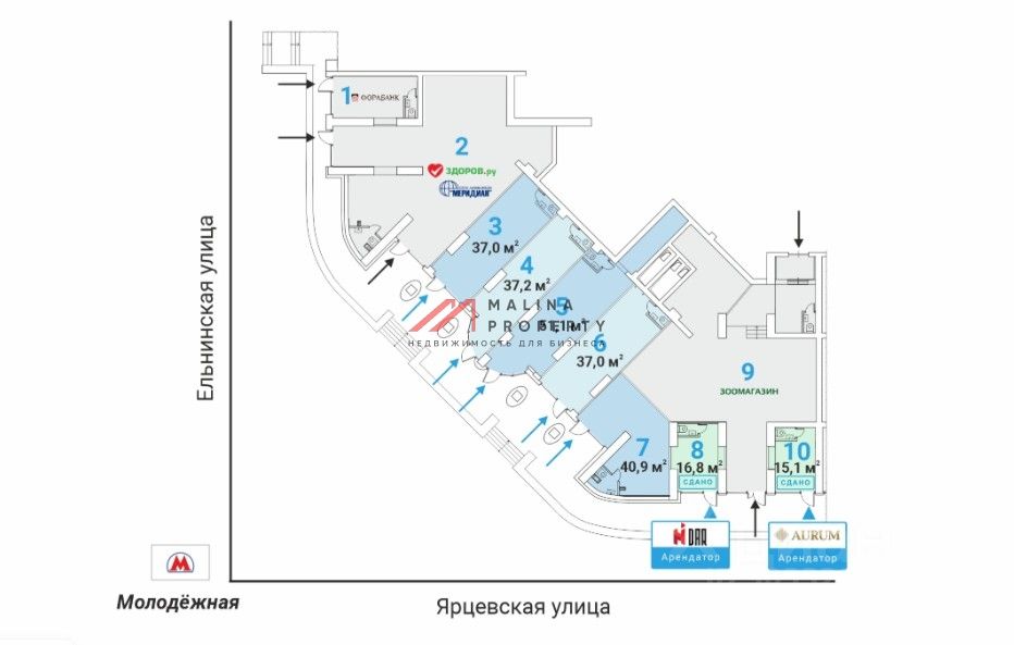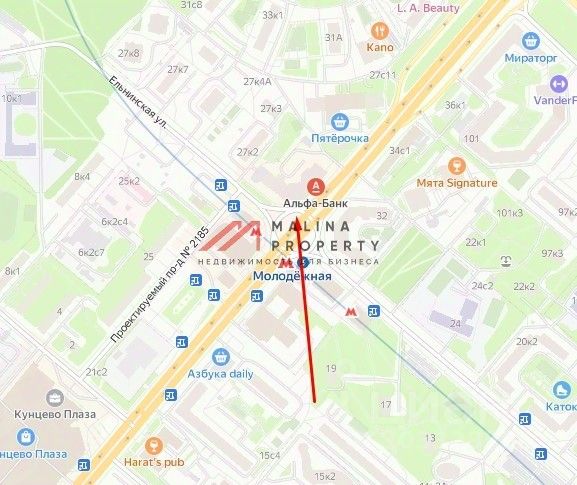 Продажа торгового помещения на Ярцевской улице, д. 27 корпус 1 (1 минута пешком от метро Молодёжная).