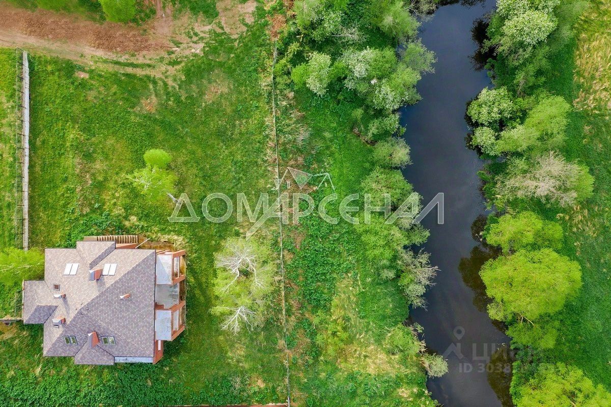 Участок 28.65 соток примыкает к реке (20 сот. собственность, 8.65 сот. береговая линия). Участок с естественным ландшафтным уклоном, с выходом к реке. Растут взрослые лиственные деревья. Расположение дома позволяет организовать парковку на 4-5 м/м