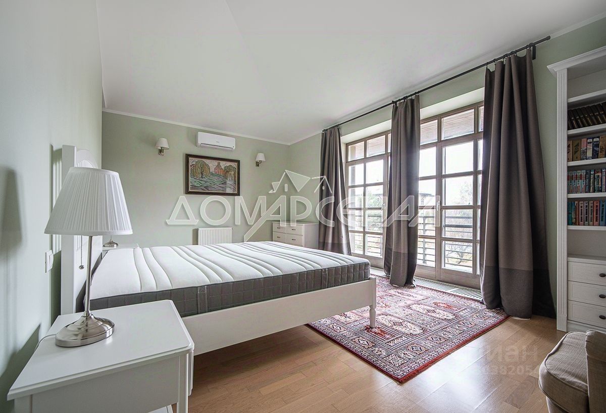 Просторный современный коттедж из кирпича с качественным ремонтом в клубного поселка премиум класса. Дом полностью меблирован и готов к проживанию. В доме 4 спальни, прихожая, лестничный холл, кухня (20.77 кв.м), роскошная гостиная-столовая со вторым светом с камином и панорамным остеклением, большая общая зона с балконом-галереей, библиотека.