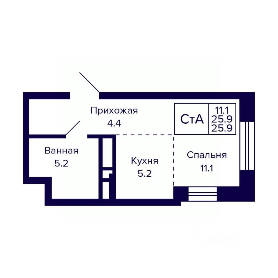 Общая площадь25,9 м2
