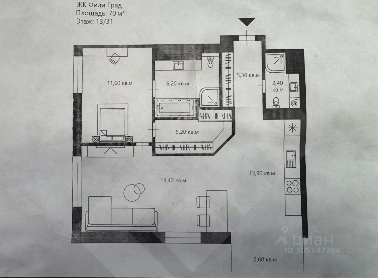 Предлагается 2-комн. квартира в элитном ЖК ''Фили Град''.