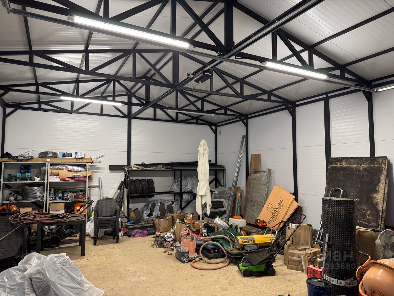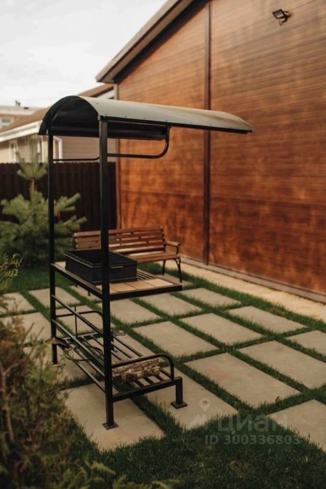 Участок: Участок 6 соток. Считаю очень удачное решение, так как не придется убирать много снега зимой и косить огромные поля газона летом, все сделано и скомпоновано так, чтобы следить за участком можно было минимально. Сделан дренаж участка, положен рулонный газон, посажены деревья. На участке стоит очень большой гараж, раньше хранил в нём катер. Если гараж полностью освободить влезет 4 машины легко. В гараже проведено электричество, также установлен дизель-генератор, от которого можно запитать дом (на всякий случай). Пространства перед гаражом и до ворот хватит, чтобы ставить машину. Также на участке есть мангальная зона (дровник уложен под верандой, ходить далеко не нужно).