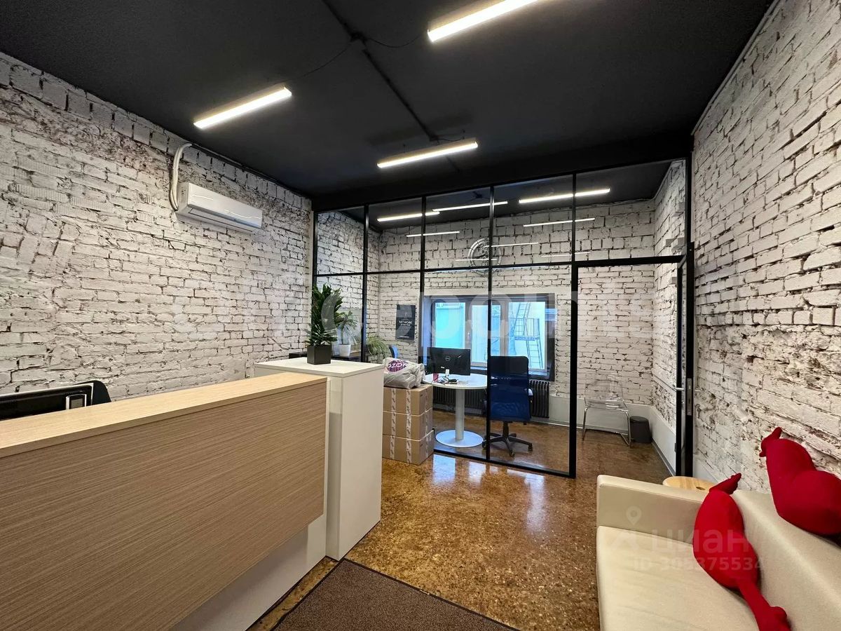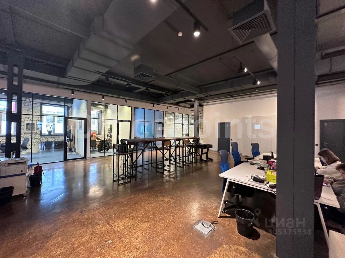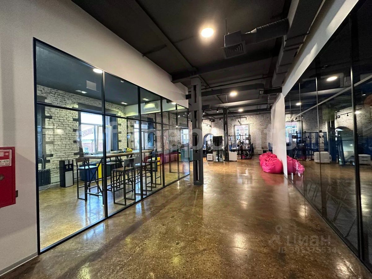В помещении стандартная отделка, открытая планировка, арочные окна, сводчатые потолки. Центральная система кондиционирования и приточно-вытяжная система вентиляции. В наличии наземная парковка (15 000 руб. в месяц за м/место).