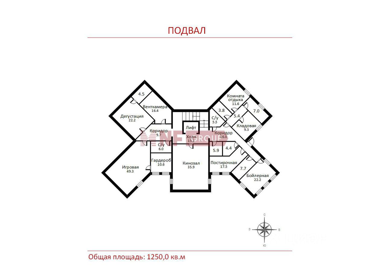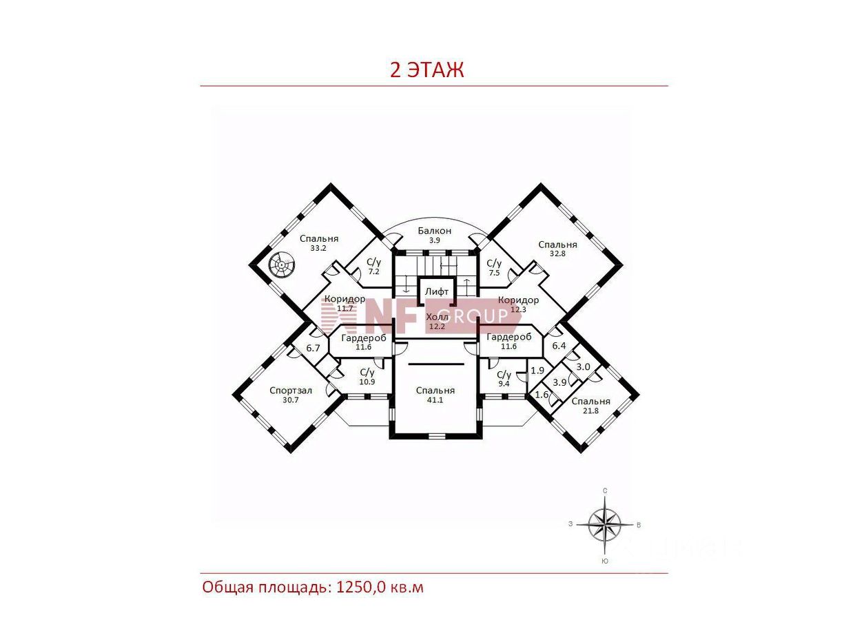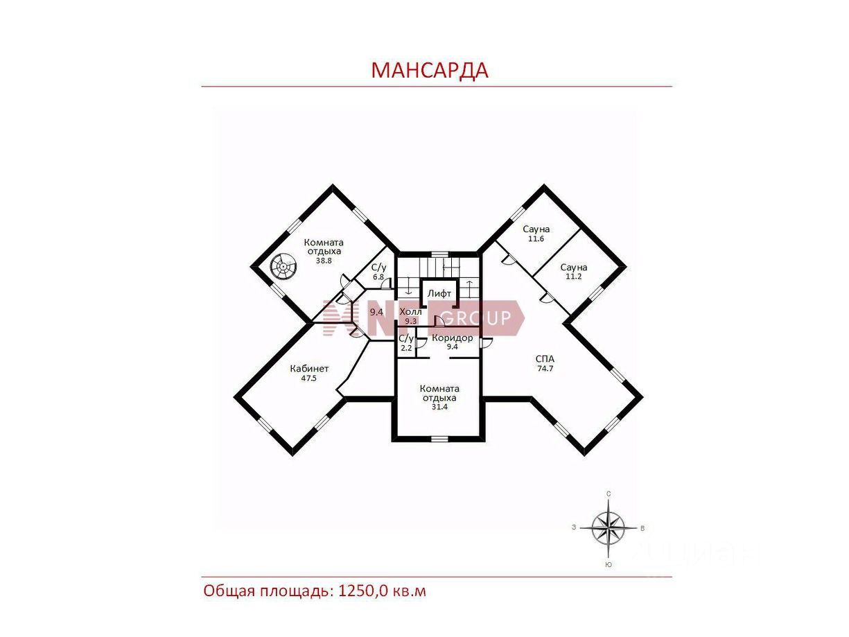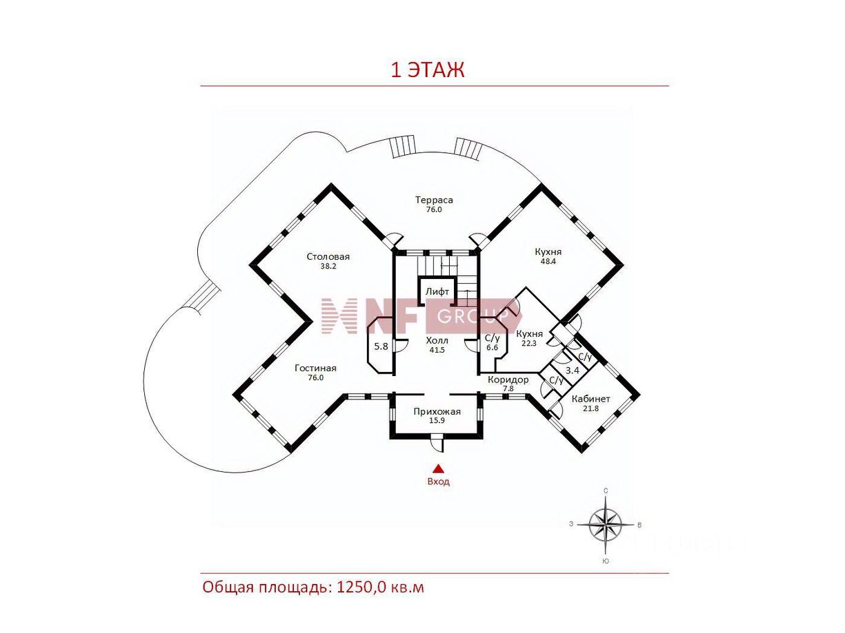 Общая площадь1250 м2