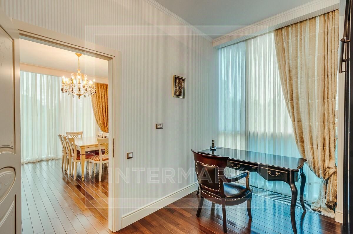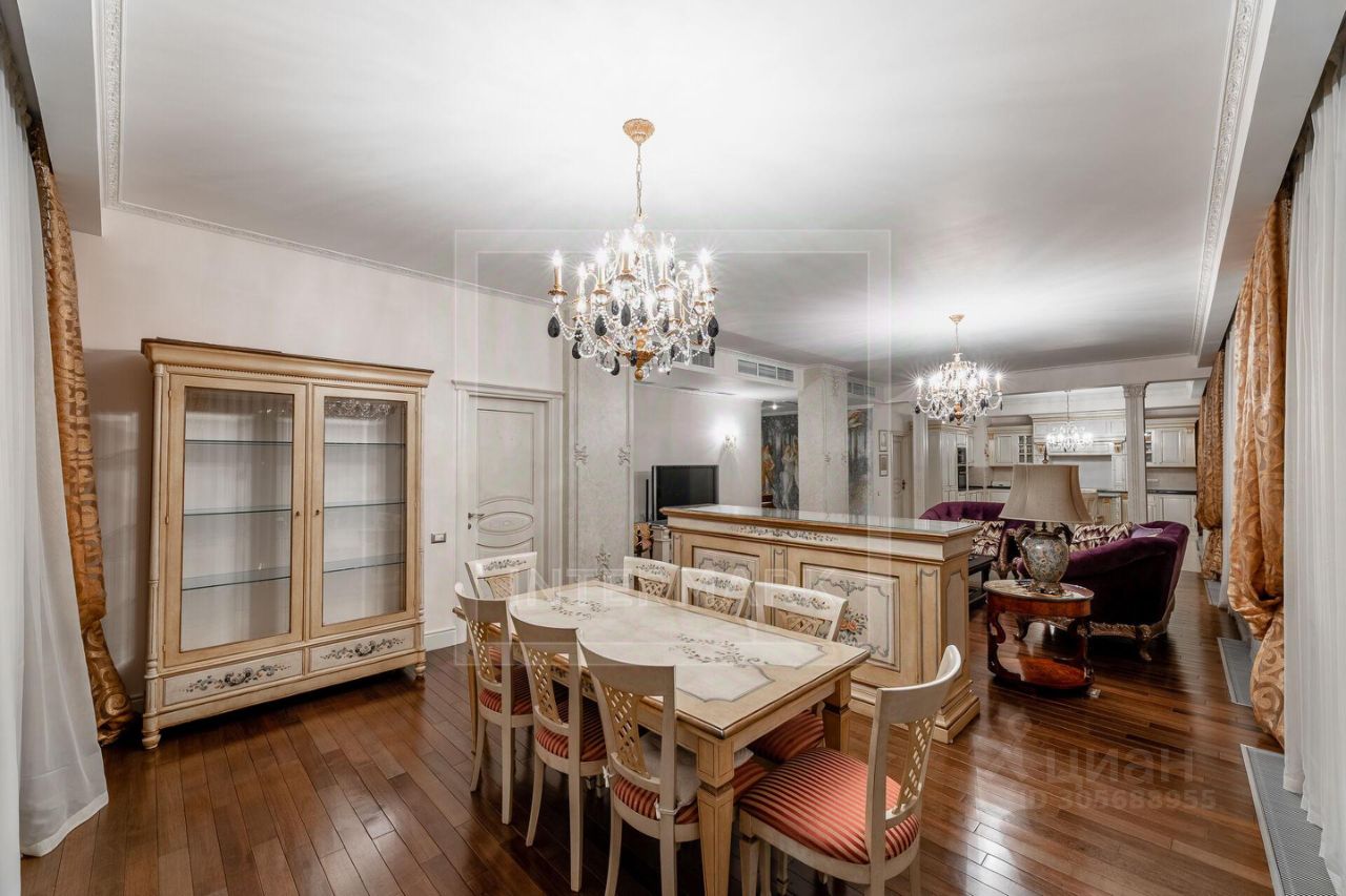 ID 62038: ЖК Панорама. Вниманию покупателей предлагается 6-комнатная меблированная квартира на 4-м этаже ЖК ''Панорама''. Общая площадь 303 кв.м. Панорамное остекление обеспечивает прекрасную освещенность. Окна выходят на 3 стороны, открывая приятные виды городских пейзажей. Планировка включает 4 спальни, кабинет, гостиную-студию и 3 полных с/у. В квартире установлена централизованная система кондиционирования и фильтрации воздуха, а также подогреваемые полы. Дизайн лота выполнен в классических тонах бежево-золотой гаммы, выгодно дополненных интерьерными деталями прованского стиля. В доме 2 квартиры на этаже. На подземном паркинге 2 м/м. ЖК находится под видеонаблюдением. Работает военизированная охрана.