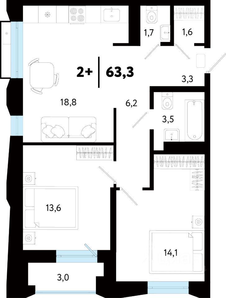 продам 2-к, Судостроителей, 507 250 000 ₽