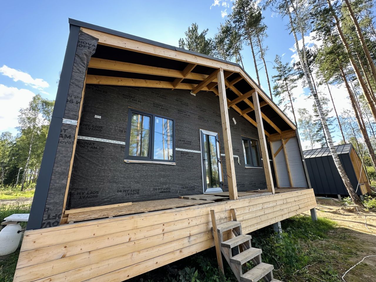 Сдаётся в нескольких вариантах отделки: 1. Теплый контур с подведенными коммуникациями, 2. Теплый контур с подведенными коммуникациями и пред чистовой отделкой под white box, готовая котельная, огороженный участок с откатными воротами, Подходит под семейную ипотеку! ВОЗМОЖНА ПРОПИСКА!!! Дом построен по каркасной технологии из сухой строганной доски, качественно утеплен каменной ватой (стены 150мм, пол/потолок 200мм). Фасад и кровля облицованы матовой металлочерепицей Grand Line 0,5мм в современном стиле.