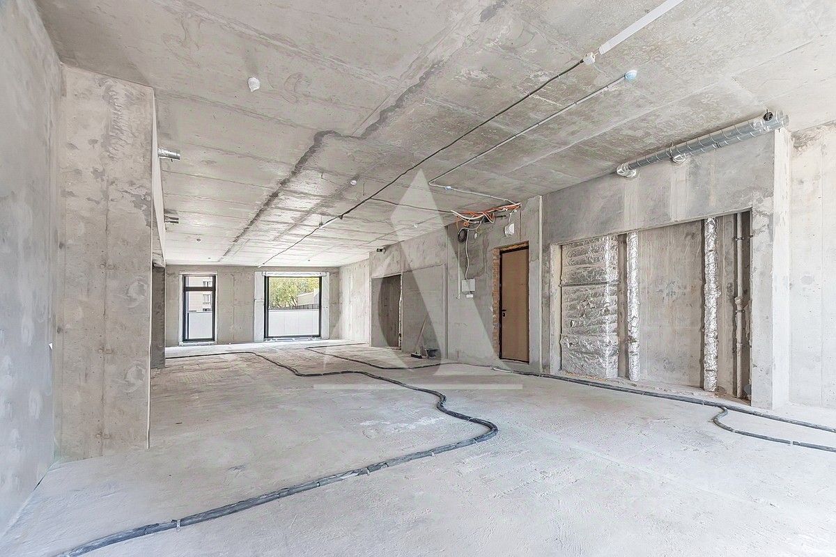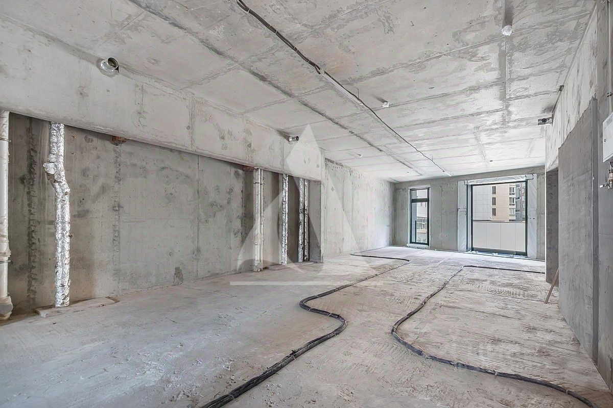 Свободная планировка: кухня-столовая, гостиная, две спальни, три санузла, терраса. Квартира без отделки. Высота потолка 3.4 м.