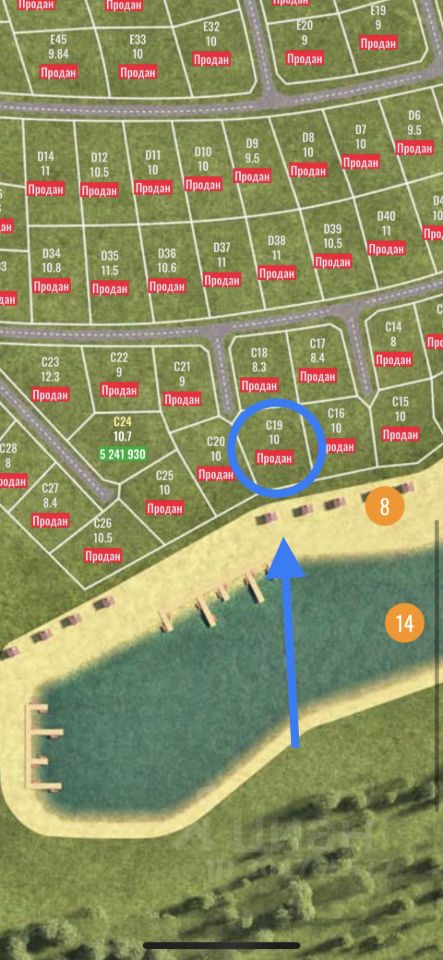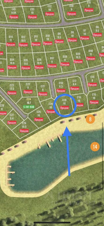 Продаётся участок 10 соток под номером С19 в охраняемом коттеджном посёлке Грин Форест Клаб , на первой линии озера, возможно увеличение!