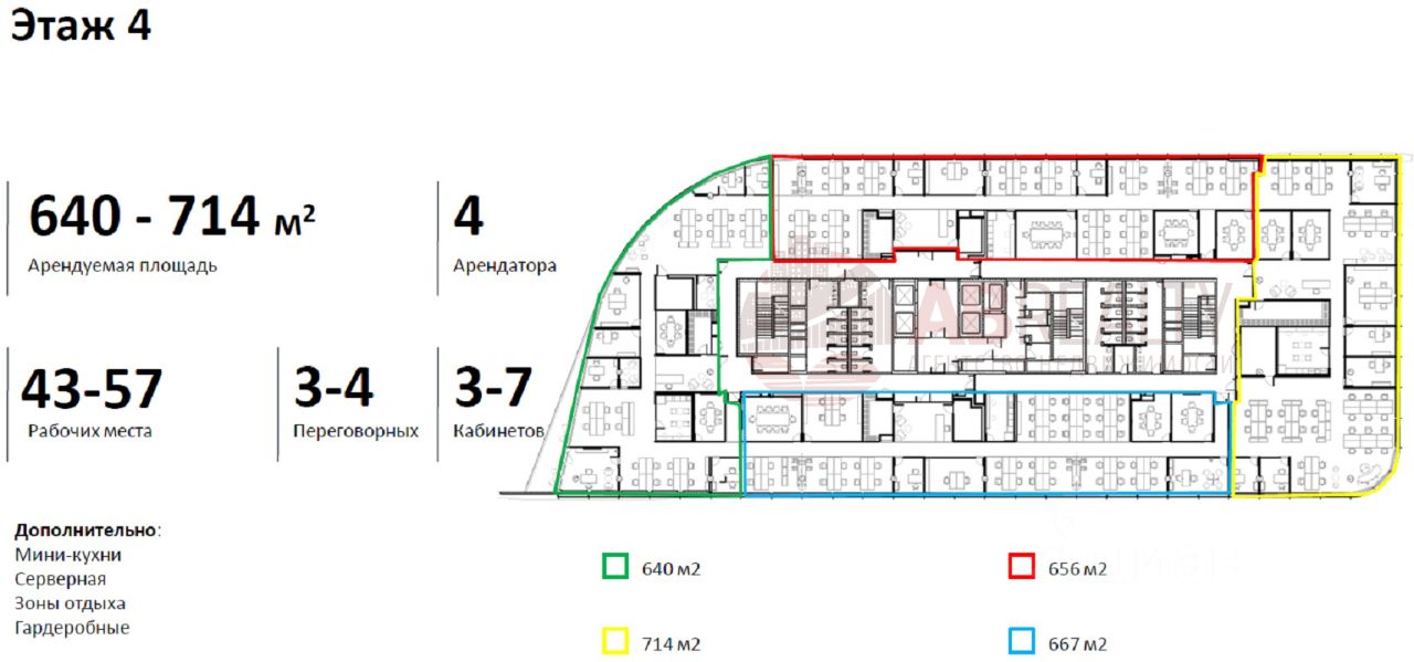 4 этаж. Офис с новым ремонтом 656 кв.м. Возможно увеличение площади. Отличная офисная отделка. Панорамное остекление. Высота потолка 4 м. Все офисы оснащены кухонной мебелью, серверной, переговорными и зонами отдыха.