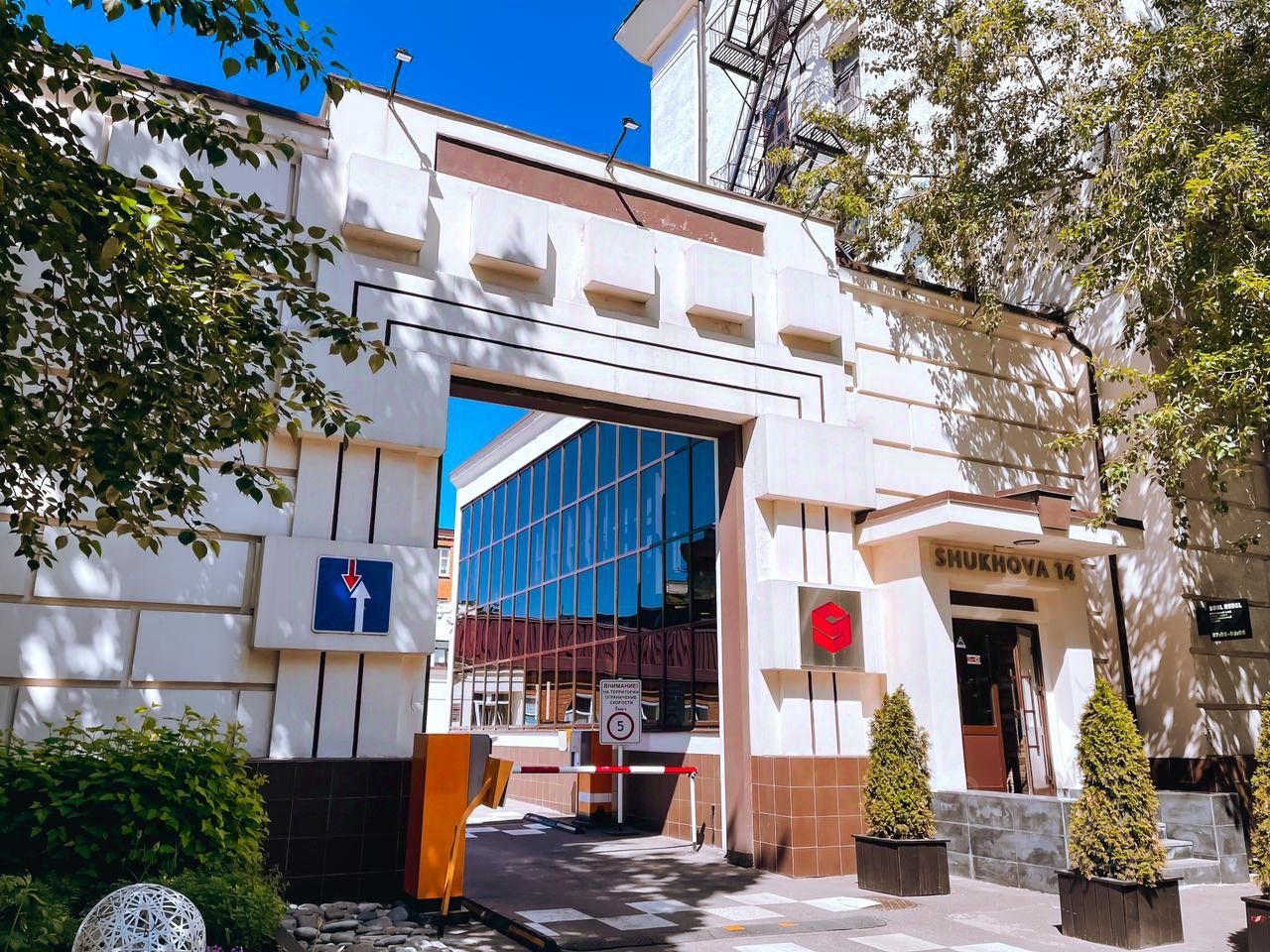 Бизнес-парк Шухова 14 - это комплекс административных малоэтажных зданий общей площадью 12 500 м2, выполненных в современных стилях внешней отделки и интерьеров помещений, на земельном участке площадью около 1 гектара в 500 метрах от границы ЦАО. В отличие от абсолютного большинства Бизнес-центров Москвы БП Шухова 14 это небольшой уютный бизнес- квартал с собственной огороженной территорией, с внутренними парковочными зонами на 70 а/м, малоэтажными строениями и с собственной развитой инфраструктурой.
