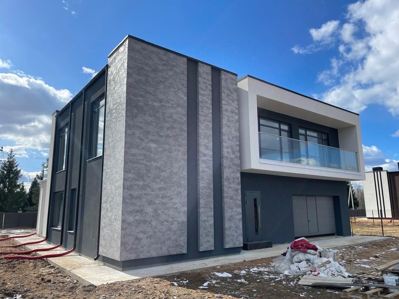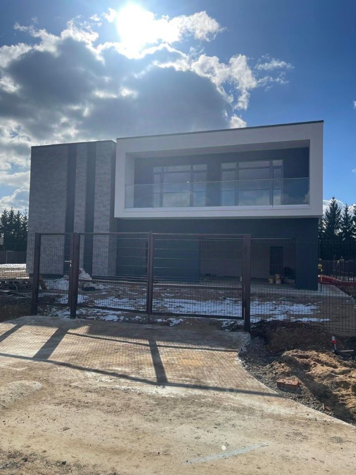 Дом двухэтажный в стиле Hi-Tech. Большие энергоэффективные окна. В доме: 6 спален, 5 санузлов, гостиная-столовая, кабинет, постирочная, гардероб, котельная, терраса, балкон, гараж на 2 машины. Распашные ворота (возможно установить автоматику что бы открывать с пульта. Дом без ремонта с заведёнными в дом центральными коммуникациями: водопровод, канализация, электричество 15 кВт, оптиковолоконный интернет, газ (по границе участка).