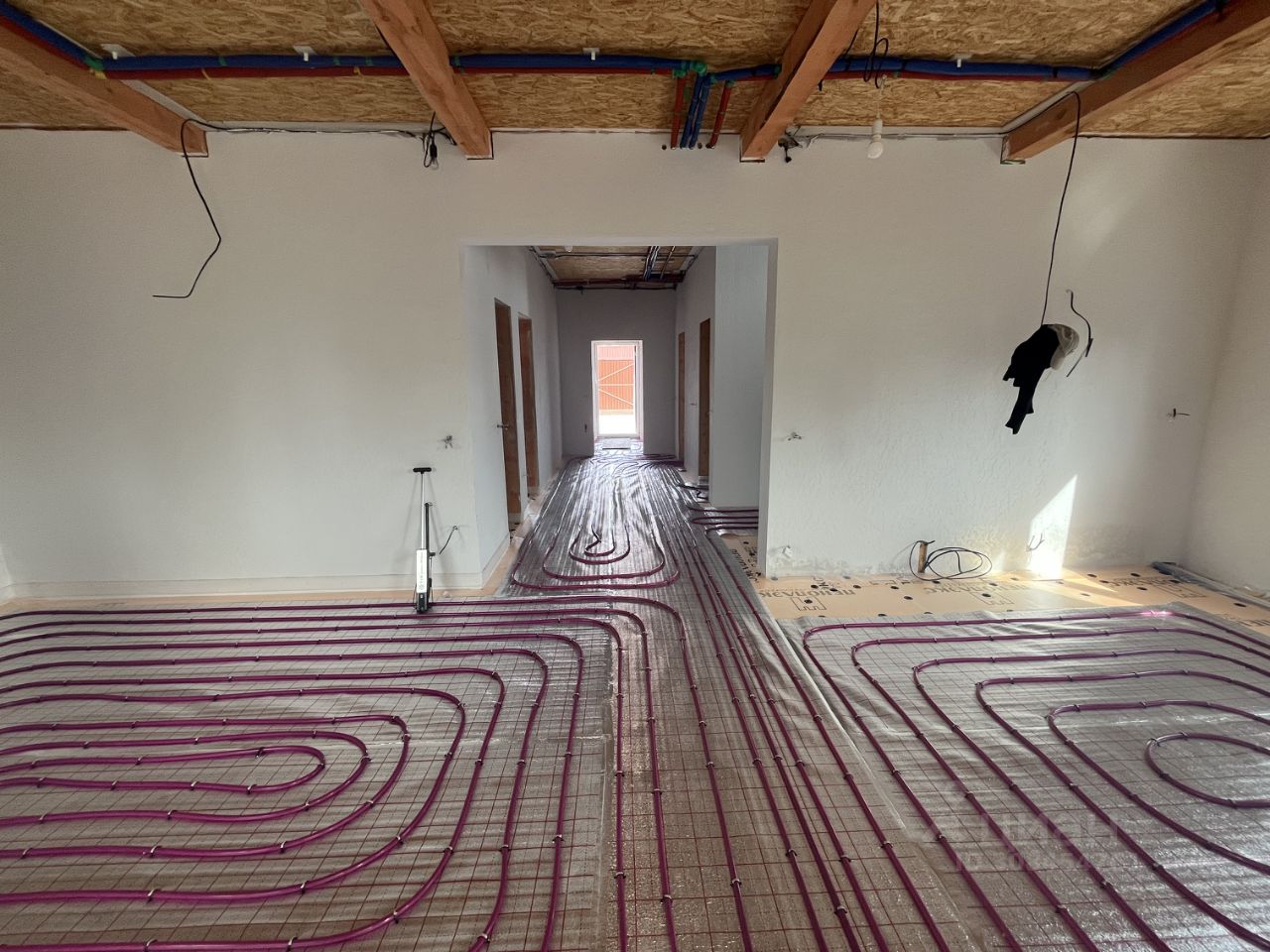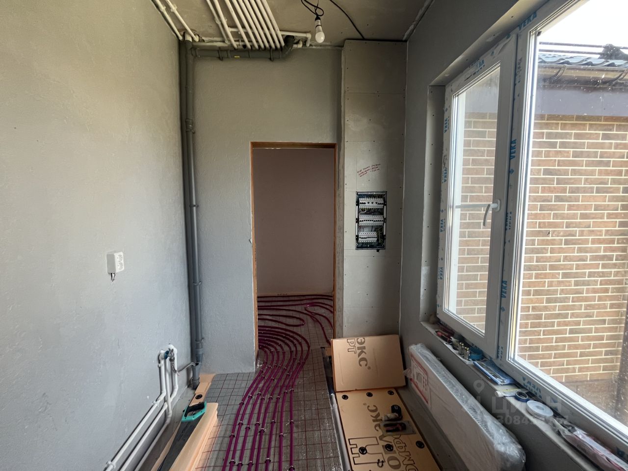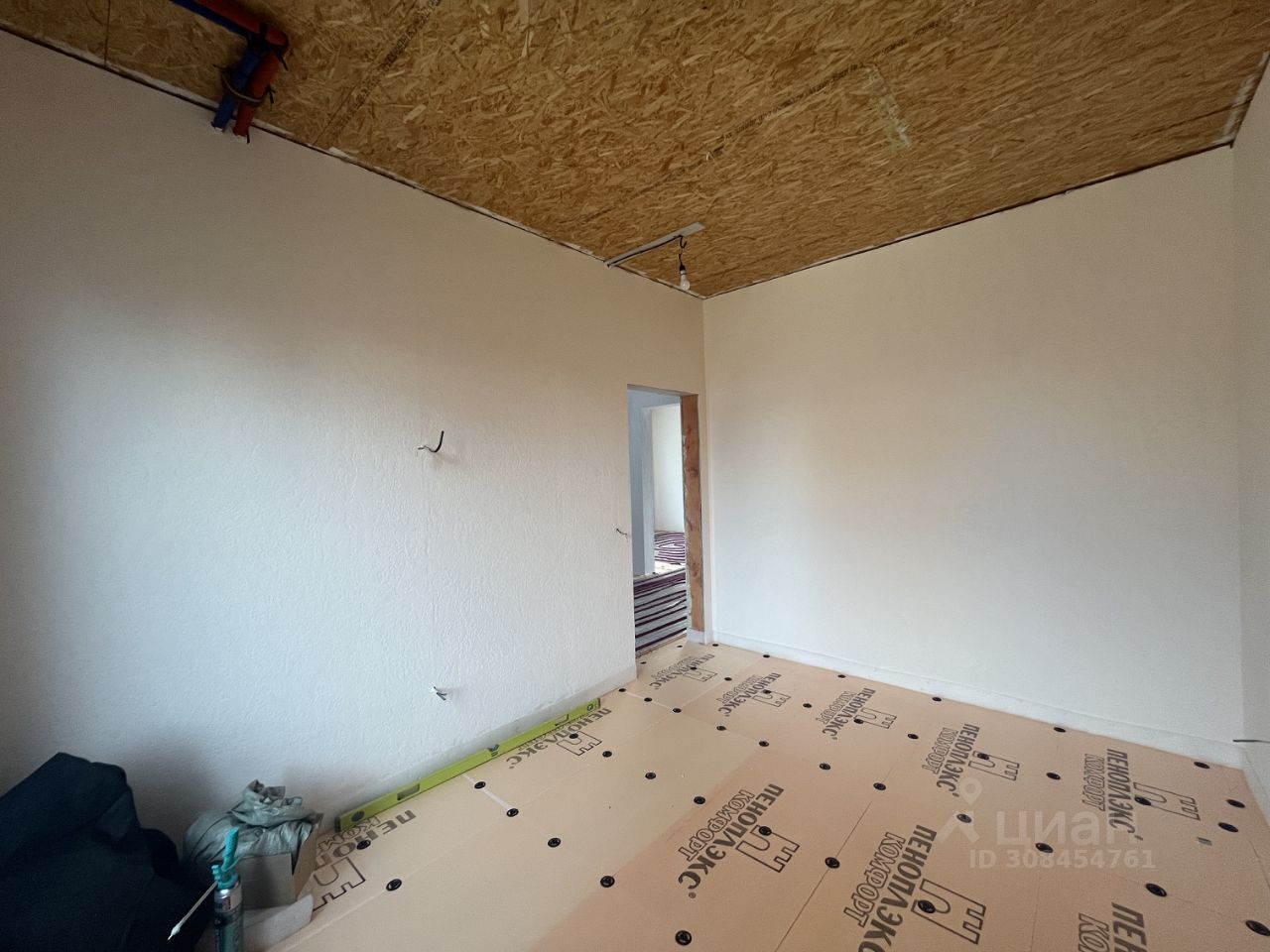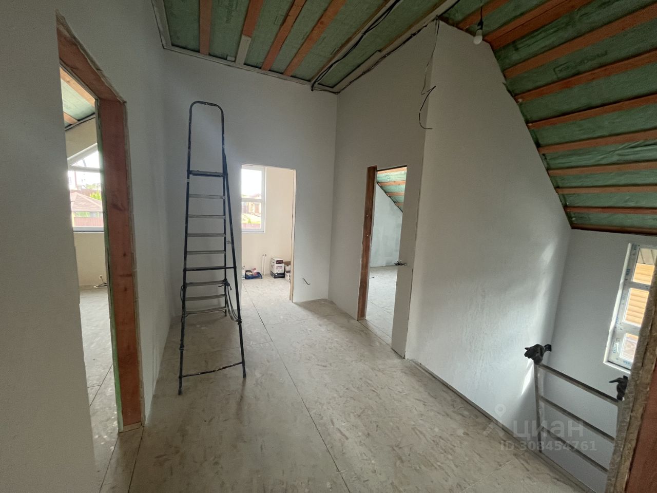 Внутри дома: Большая кухня-гостинная . 1 комната на первом этаже, бойлерная, прихожая, гардероб, теплый тамбур и санузел. 3 комнаты на 2м этаже, из двух есть выход на балкон, гардеробная, санузел.