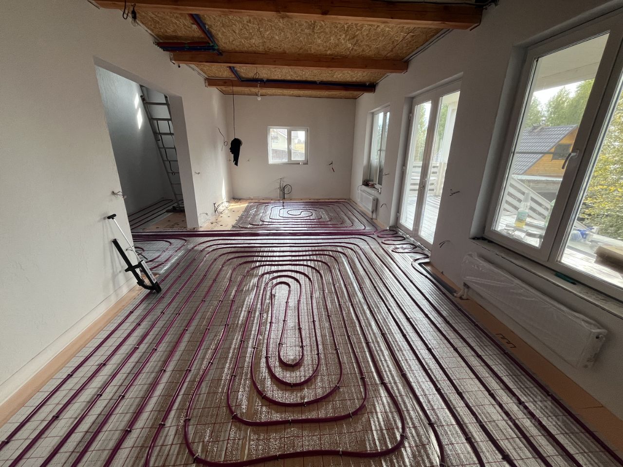 Межэтажное перекрытие - толщина 200мм. Окна - тройной стеклопакет, стекла которого берегут тепло и отражают УФ лучи. Защита от насекомых москитные сетки.