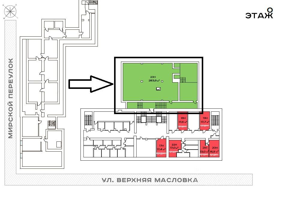 Помещения на 1м этаже с отдельным входом, есть мокрая точка.