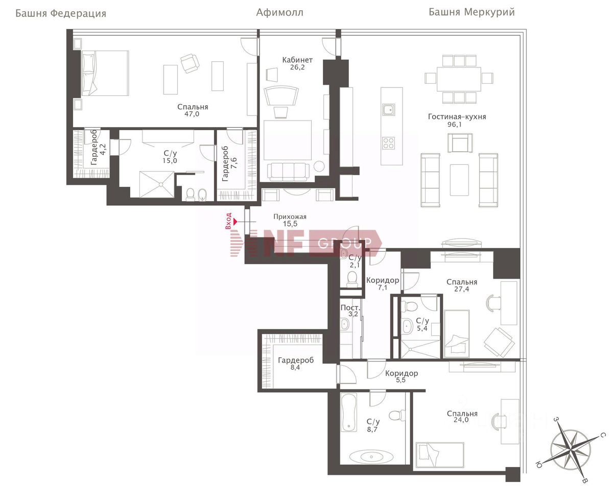 Лот: 84564. В продаже просторный видовой апартамент с камином на 57-м этаже башни ''Москва'' комплекса ''Город Столиц'' в ММДЦ ''Москва-Сити''. Планировка: гостиная-столовая с камином зоной и зоной кухни, мастер-спальня с будуаром, ванной комнатой и двумя гардеробными, 2 спальни с собственными ванными комнатами (одна из них с гардеробной), кабинет, гостевой санузел, постирочная. Выполнена дизайнерская отделка с применением натуральных материалов, установлена качественная мебель, бытовая техника премиум-класса. Из панорамных окон открывается красивый вид на город. Высота потолка 3,2 м. Есть возможность покупки 4 машино-мест в подземном паркинге. ''Город Столиц'' - многофункциональный комплекс премиум-класса. Профессиональная круглосуточная охрана, современные инженерные системы, собственная инфраструктура и доступ ко всем объектам ММДЦ ''Москва-Сити''.
