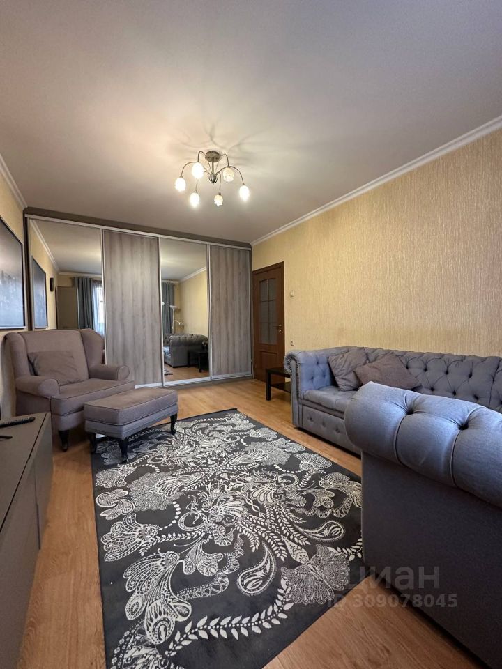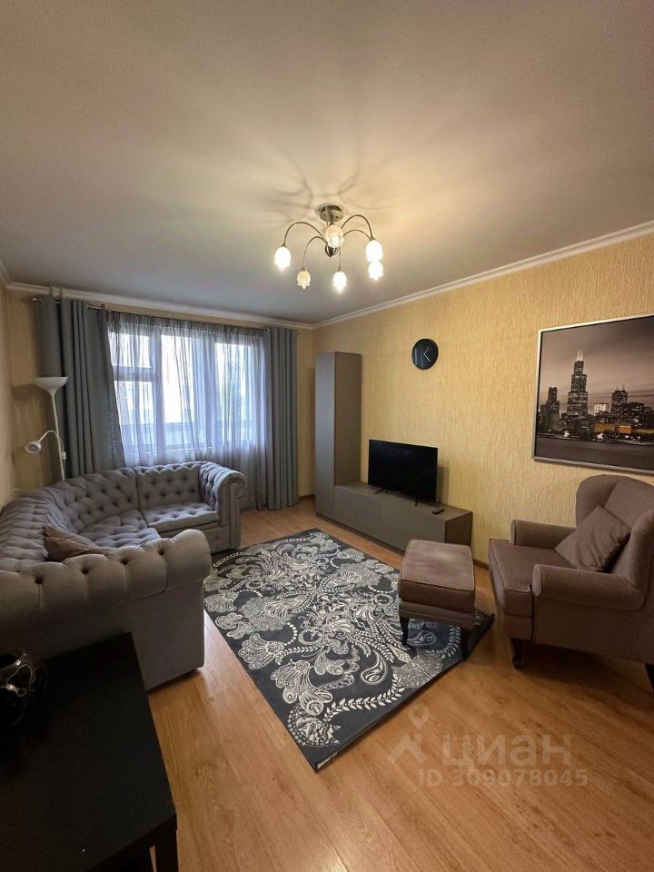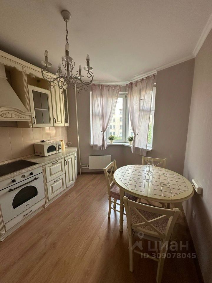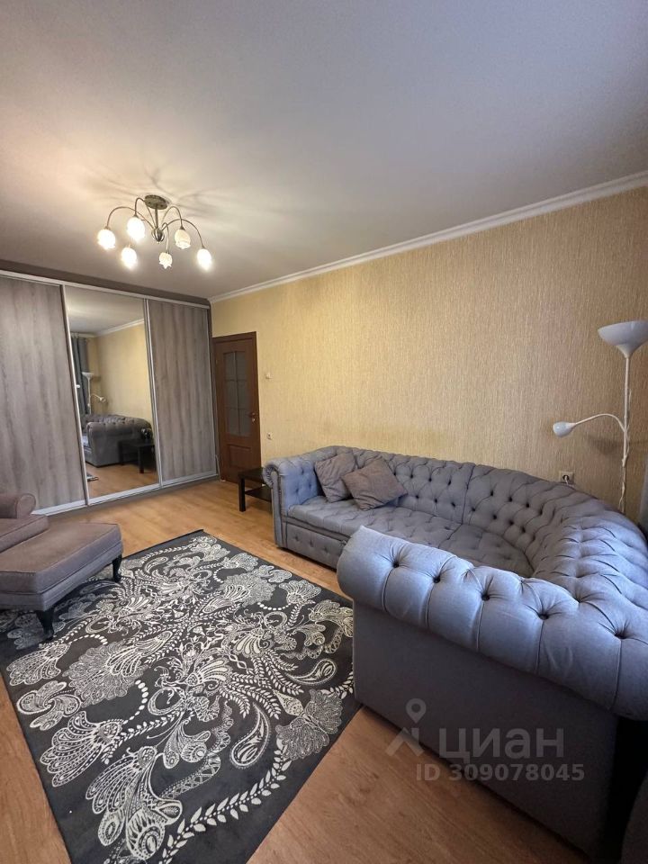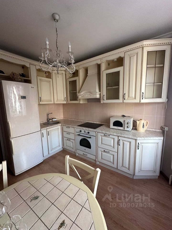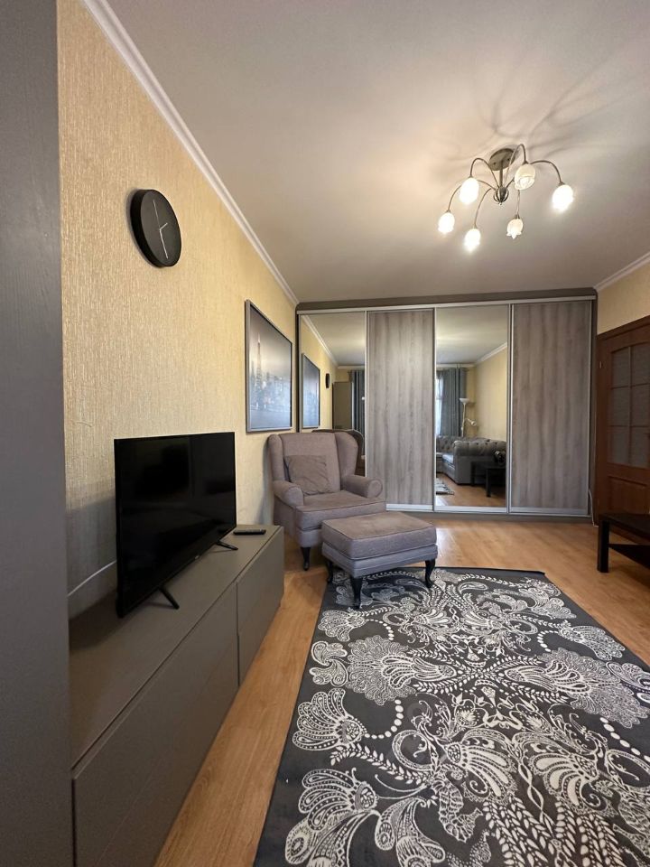 Просторная гостиная 20 кв. м. с выходом на застекленный балкон. В комнате расположен вместительный шкаф купе , удобный диван , телевизор и кресло, за которым приятно разместиться с книгой и чашечкой чая. Кухня укомплектована современным гарнитуром с качественной бытовой техникой : холодильник, микроволновая печь и чайник , посудомоечной машинки нет.