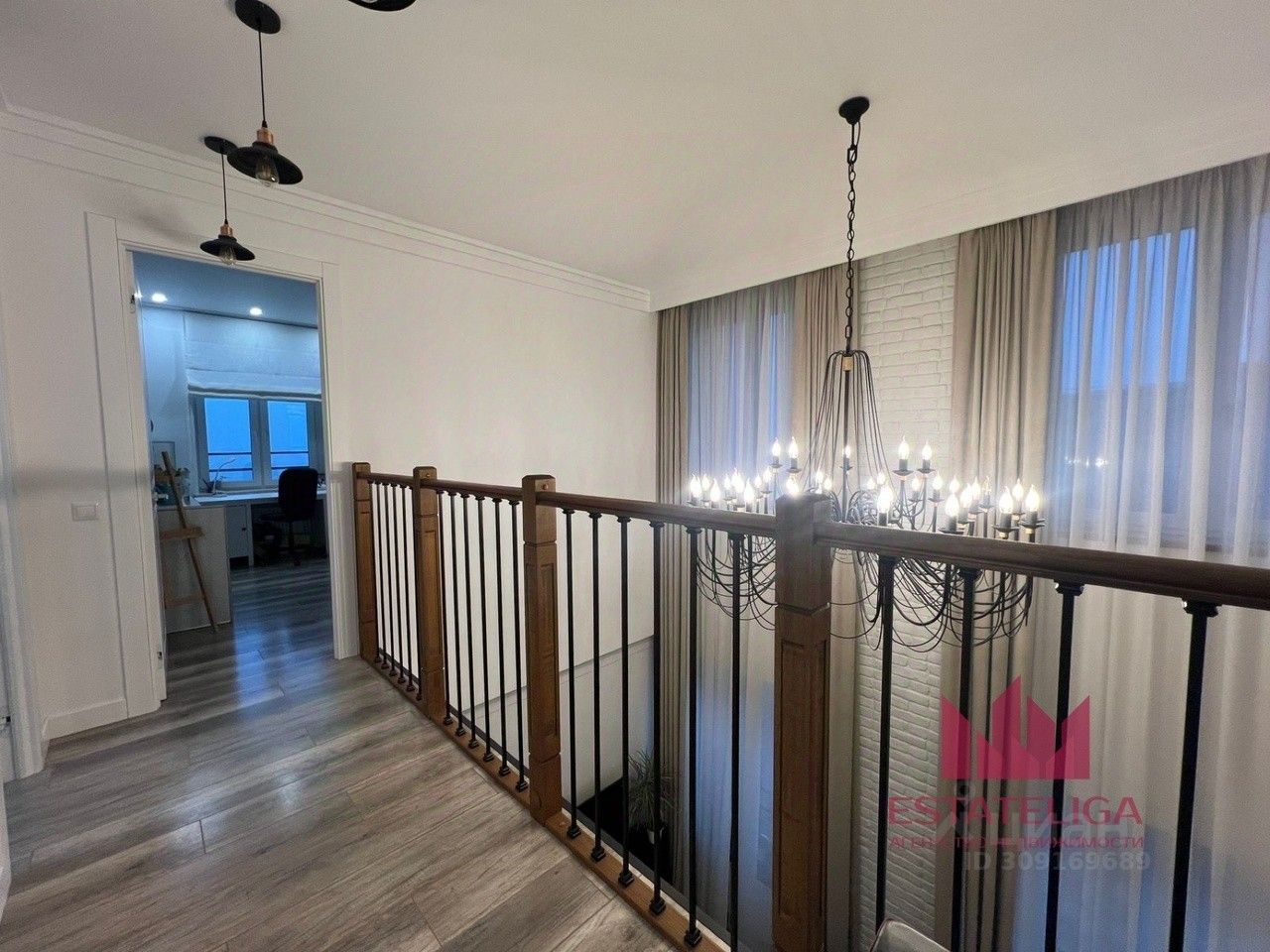 Функциональная планировка квартиры, разработанная по индивидуальному дизайн-проекту. На первом этаже: гостиная, кабинет и гостевой санузел, большая кладовая, спальня, а также кухня. На втором этаже: мастер спальня, еще одна комната, гардеробная, санузел с душевой, а также хамам и сауна, ванная с гидромассажем.