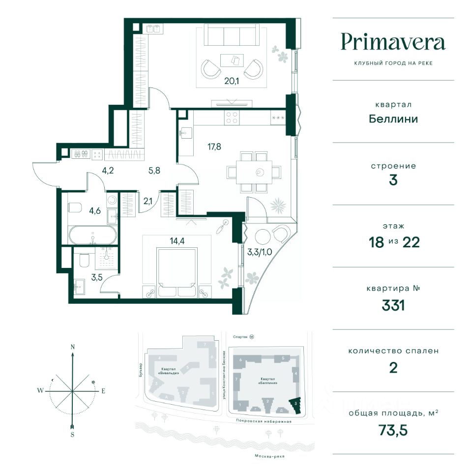 Клубный город на реке ''Примавера'' — это современный жилой комплекс премиум-класса, расположенный на первой береговой линии Москвы-реки в экологически чистом районе Покровское-Стрешнево.