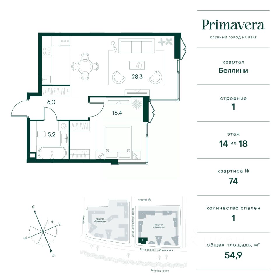 Клубный город на реке Primavera — это современный жилой комплекс премиум-класса, расположенный на первой береговой линии Москвы-реки в экологически чистом районе Покровское-Стрешнево.