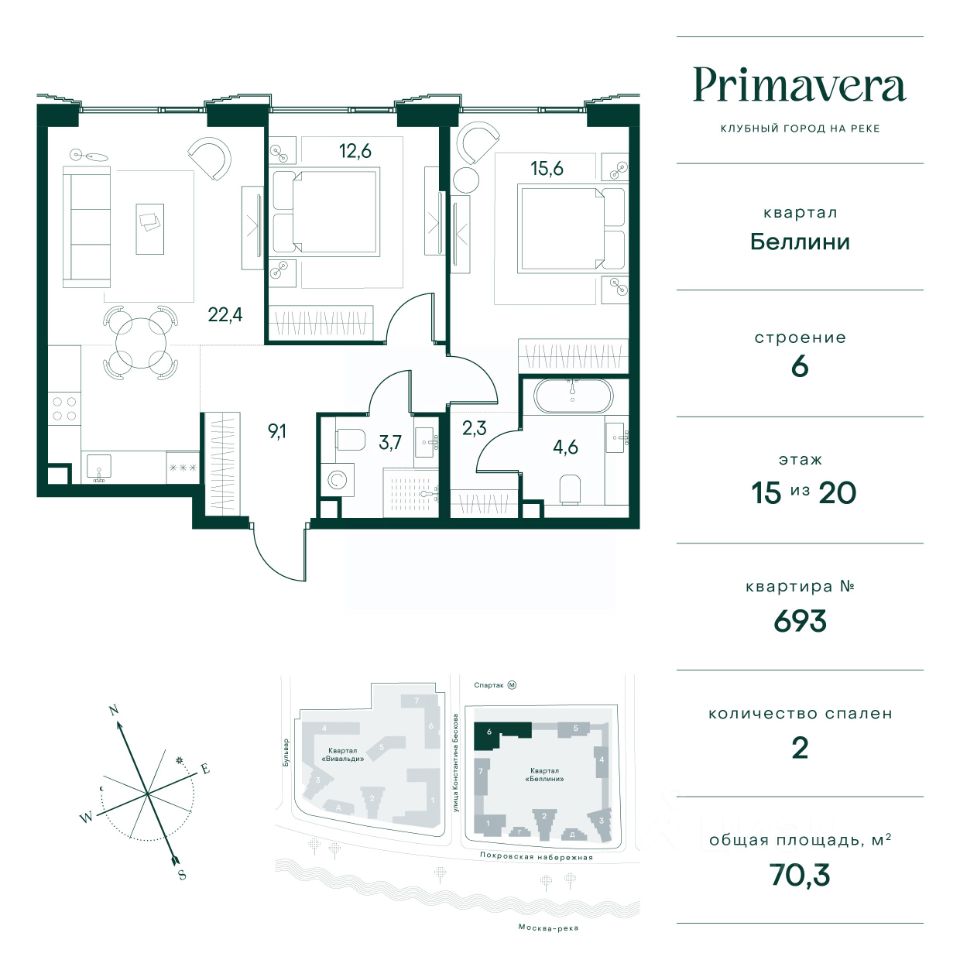 Клубный город на реке Primavera — это современный жилой комплекс премиум-класса, расположенный на первой береговой линии Москвы-реки в экологически чистом районе Покровское-Стрешнево.