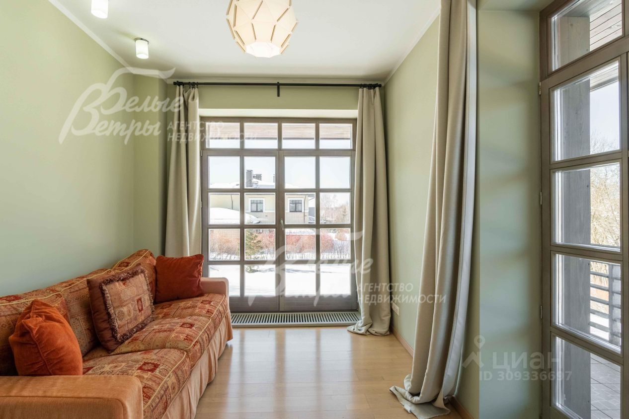 Мебель, оборудование: мебель BoConcept, Flou и других известных брендов. Спальни оборудованы просторными кроватями, диванами, тумбами, туалетными столиками. Гардеробные комнаты оборудованы системами для хранения вещей. Установлена кухня со встроенной техникой (духовой шкаф, варочная поверхность, посудомоечная машина, вытяжка), двухкамерный холодильник. Стиральная машина, пылесос, телевизор. Вся сантехника установлена: туалеты, ванны, биде, раковины, душевые кабинки - все известных европейских брендов. На первом этаже открытые панорамные окна. На втором этаже в всех спальнях есть карнизы и шторы. Дом украшен картинами, оригинальными предметами интерьера..