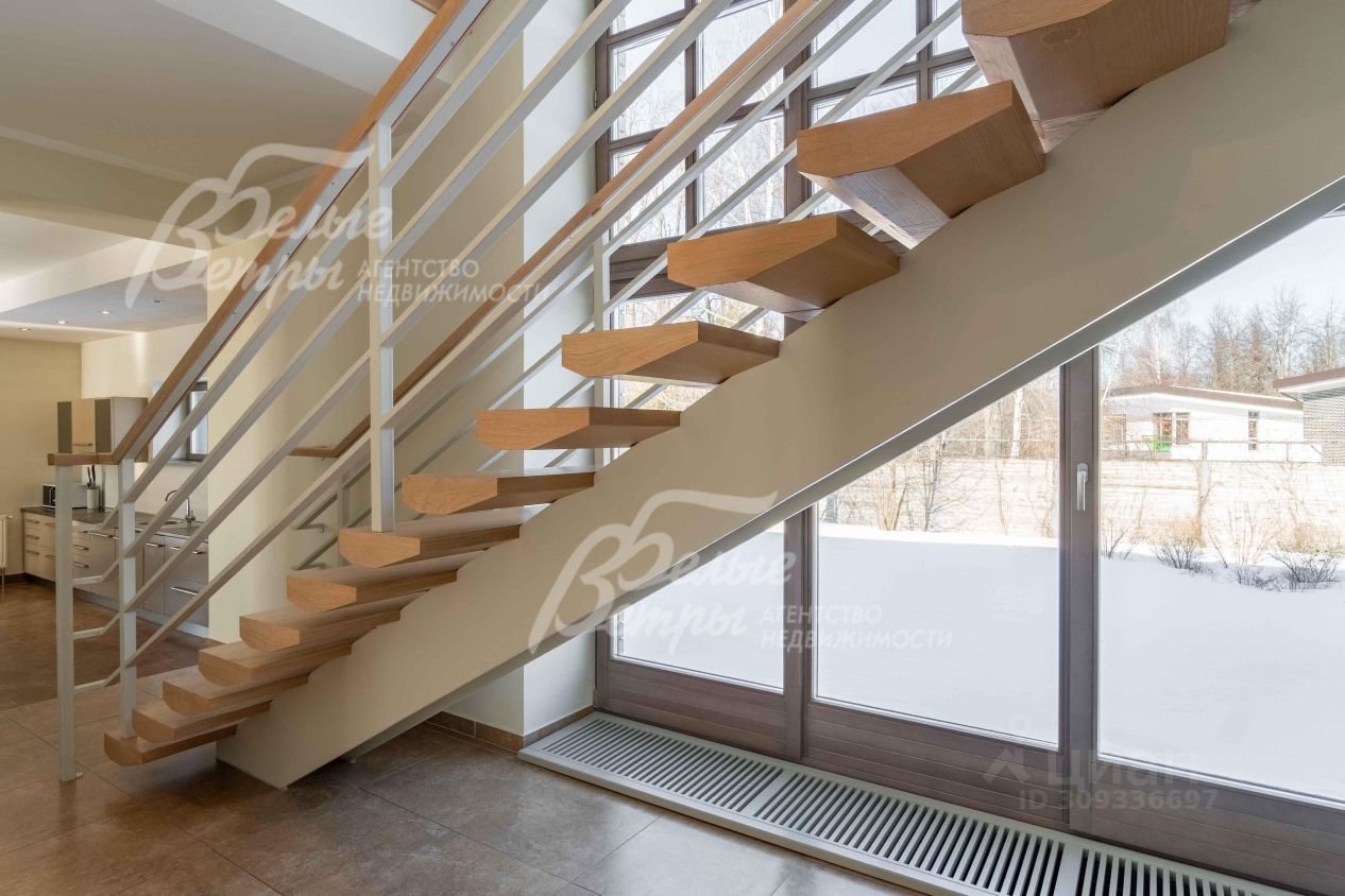 Описание внутренней отделки: стильная дизайнерская отделка с использованием современных материалов в современной стилистике. Стены: декоративная штукатурка - окрашены, в санузлах - плитка. Полы: весь первый этаж и санузлы - плитка с сиcтемой ''теплый пол'', на втором этаже - паркетная доска из дуба. Архитектурный стиль - органическая архитектура Фрэнка Ллойда Райта..
