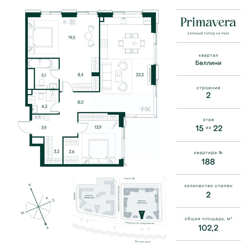 Клубный город на реке Primavera — это современный жилой комплекс премиум-класса, расположенный на первой береговой линии Москвы-реки в экологически чистом районе Покровское-Стрешнево.