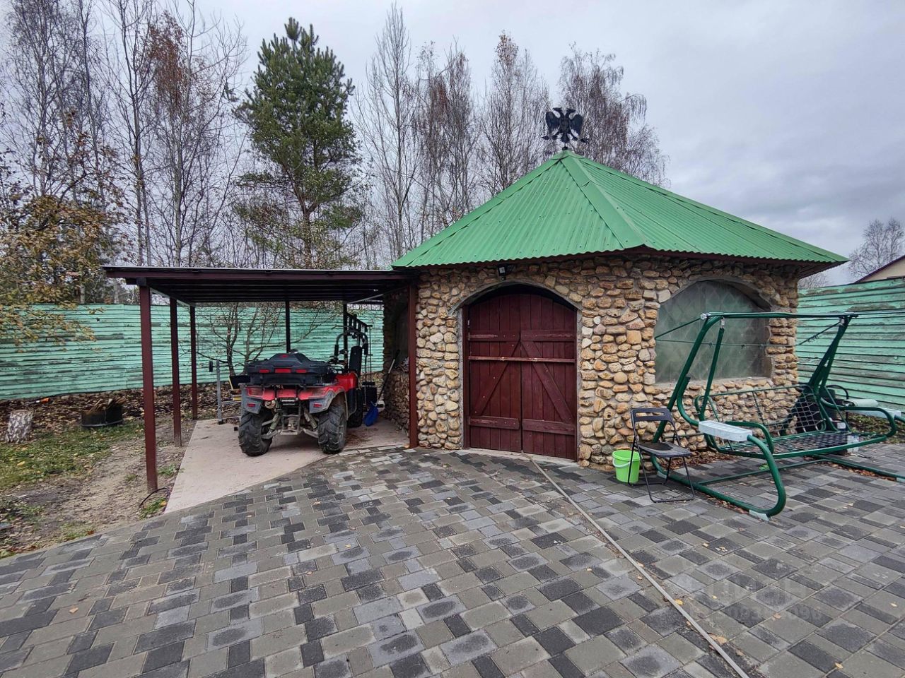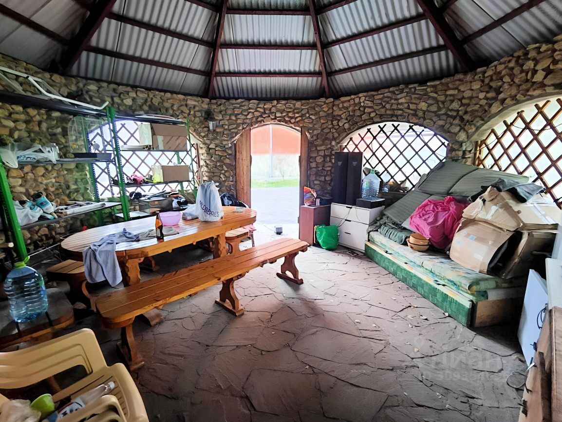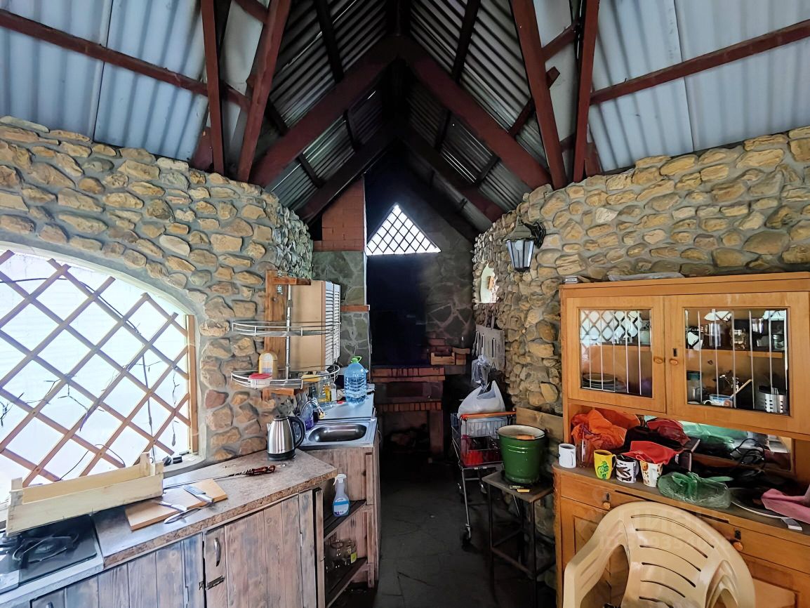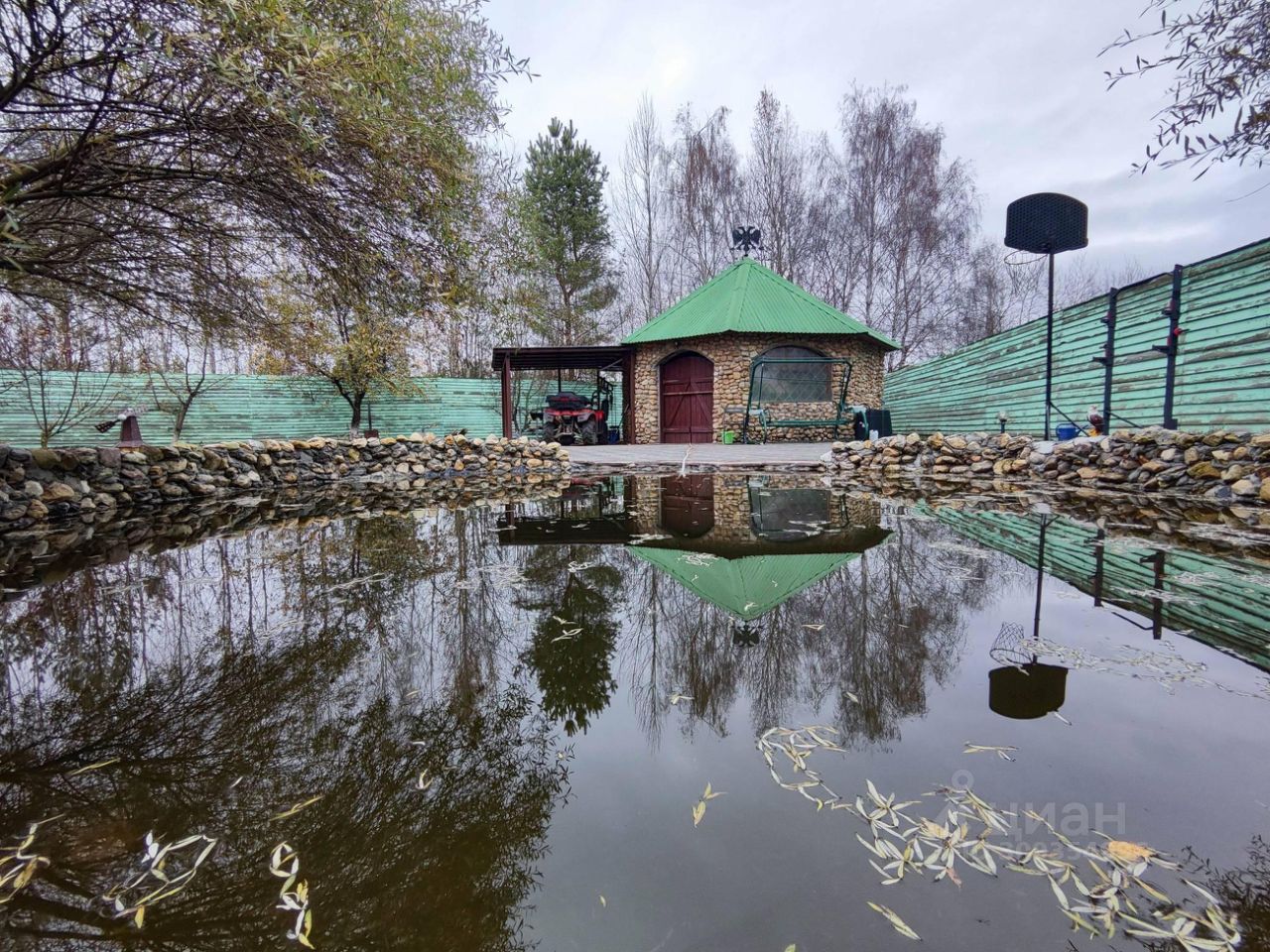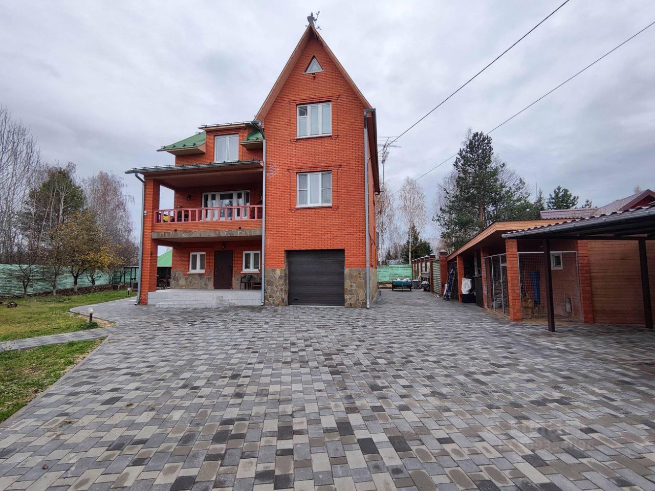 4.Ухоженный участок Проведены ландшафтные работы, есть пруд, большая беседка с летней кухней, вольер для собак, площадки и навесы для авто, подсобные помещения.