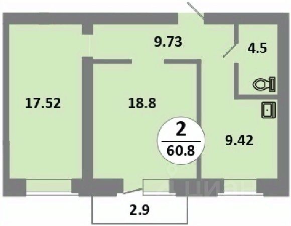 Продаётся 2-комнатная квартира в сданном доме (Соколовская, 52 (Дом 11)), срок сдачи: III-кв. 2024, общей площадью 60.8 кв.м., на 13 этаже.