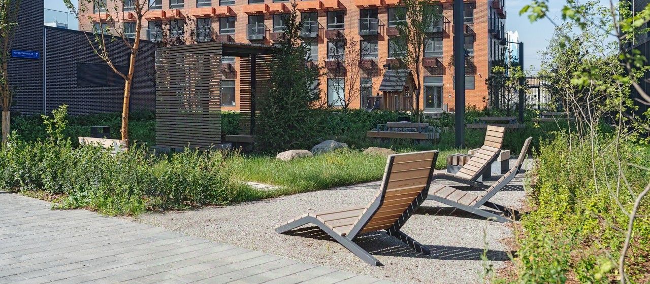 В проекте предусмотрена медленная зона для электросамокатов — с 7 утра до полуночи при въезде на территорию квартала скорость электросамокатов автоматически снижается до 15 км/ч. Артикул 890980 (Застройщик ООО Специализированный застройщик ''ДРСУ-34'')