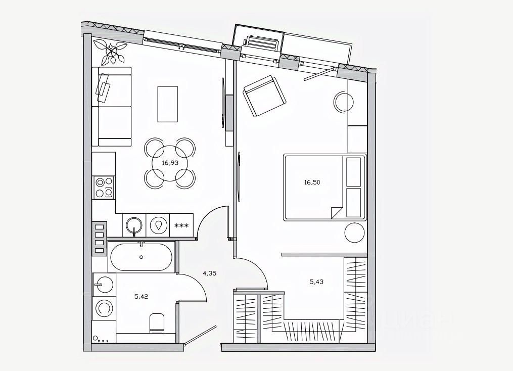 Общая площадь48,8 м2