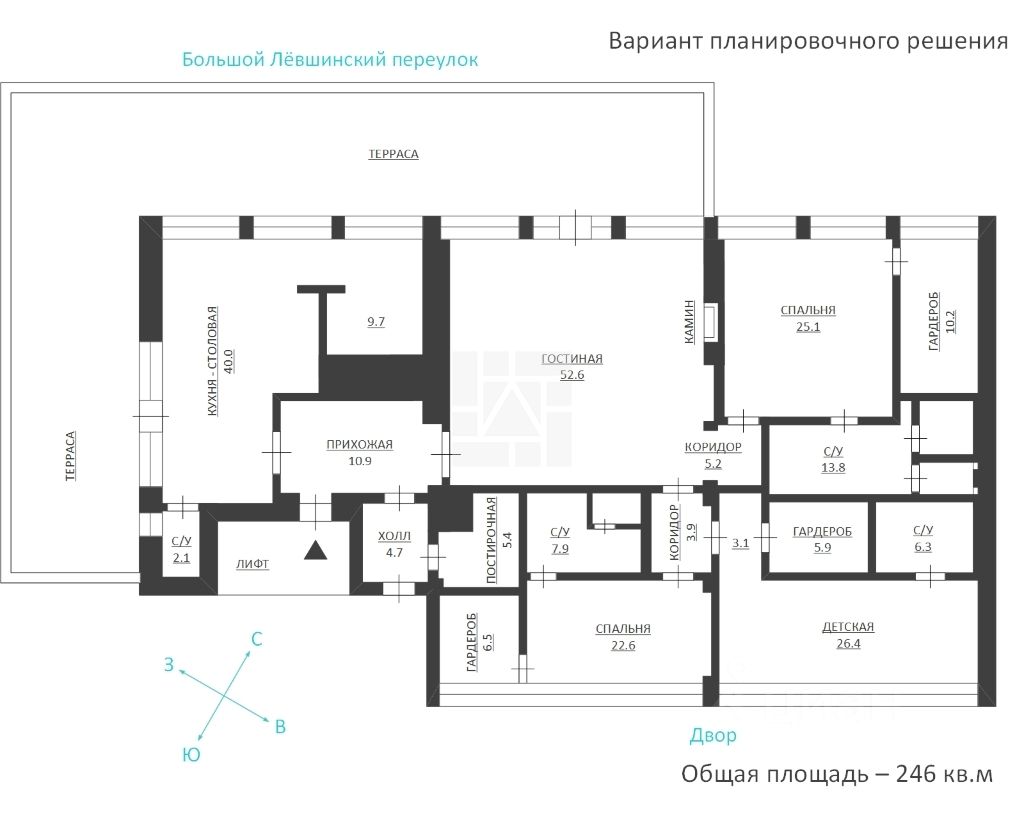 Лот: 9153. Сотрудничаем с риелторами. Бонус агенту. Видовой ПЕНТХАУС без отделки, общей площадью 246 кв.м. с открытой террасой (28 кв.м) и дровяным камином в ЖК ''Дворянское гнездо''.