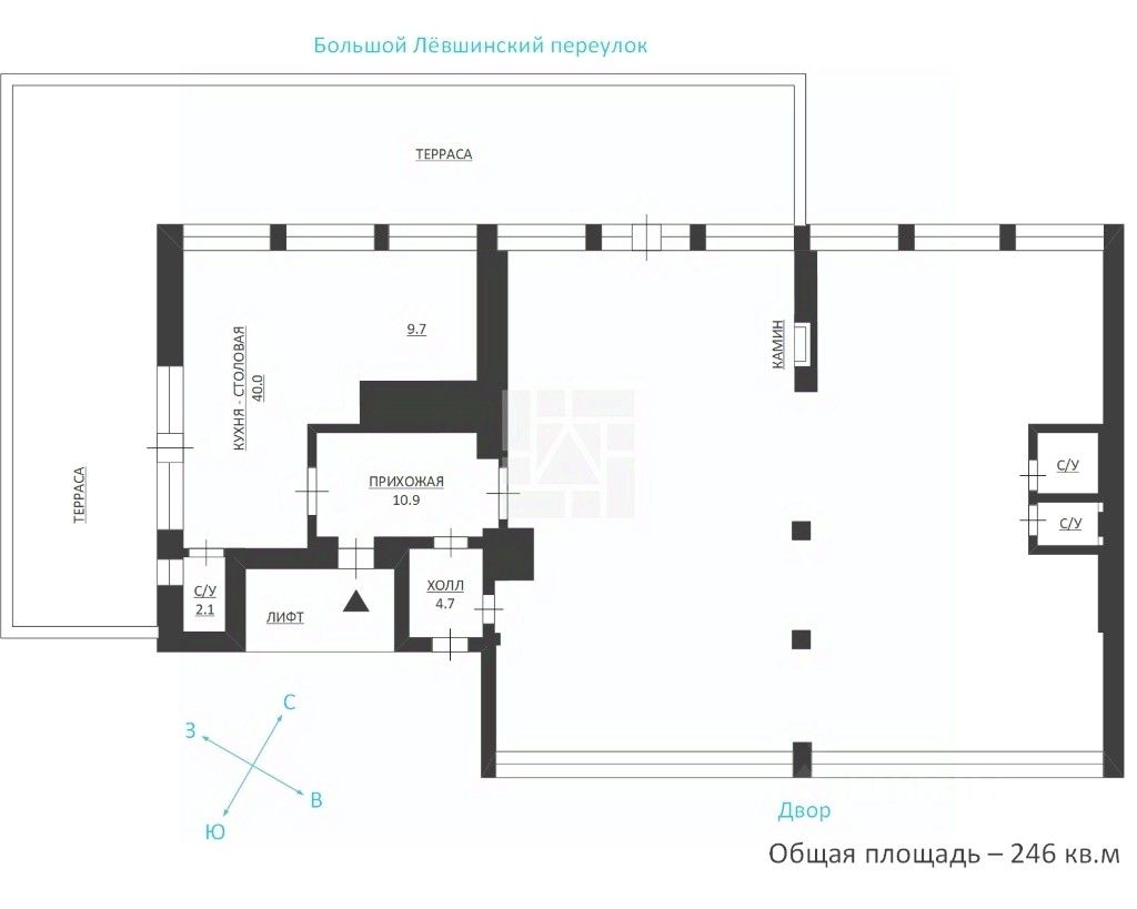 Окна ориентированы на три стороны света. Виды во двор, на пер. Б. Лёвшинский, в сторону Кропоткинского переулка. В пентхаусе высокие потолки 3,4 м, панорамное остекление, окна Собственник поменял на новые.