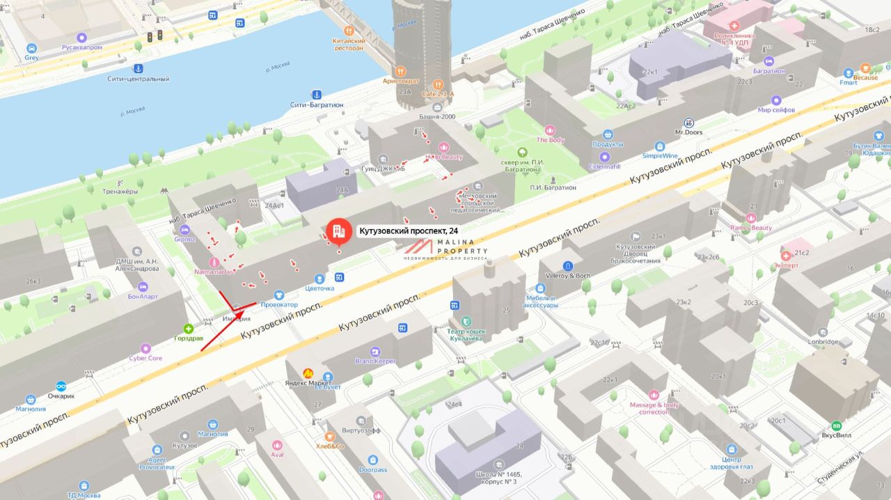 Продажа торгового помещения 379,4 м2 на Кутузовском проспекте, д. 24 (10 минут пешком от метро Кутузовская). 1 линия домов.