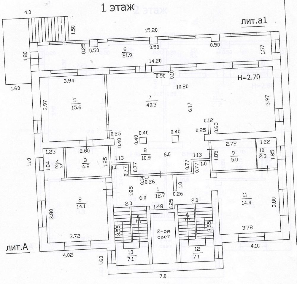Дом изначально строился на 3 семьи с отдельным входом, 3 кухни, 5 спален, гостиная с камином, общий холл, отдельные лестничные площадки.