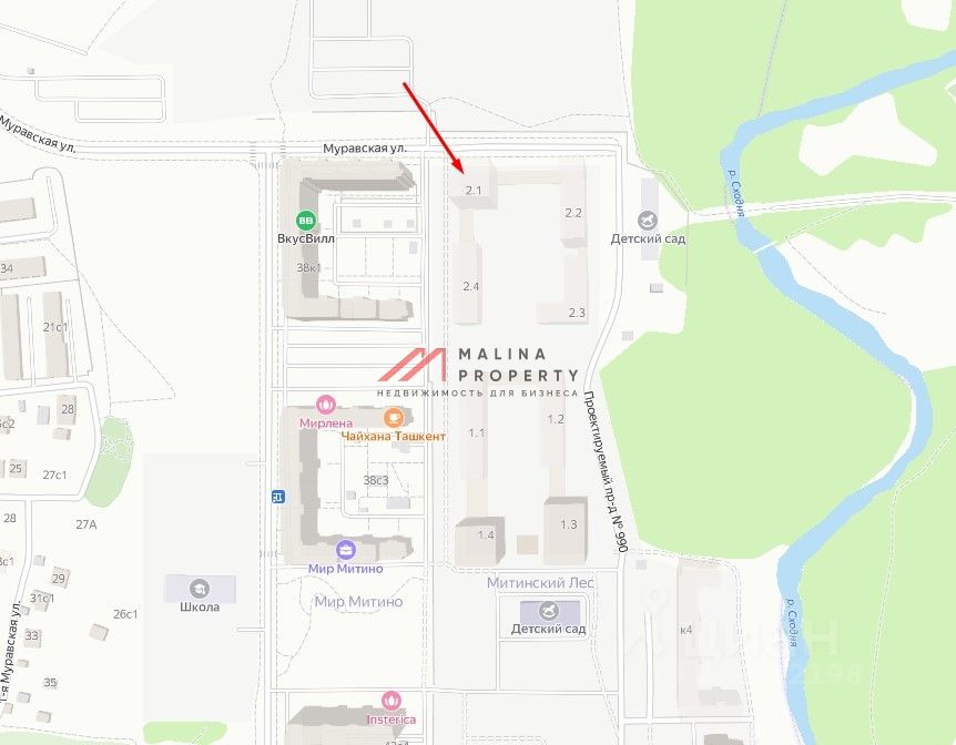 Аренда торгового помещения в ЖК ''Митинский Лес'', корпус 2.1, Муравская улица, 38Бк2 (10 минут транспортом от метро Пятницкое шоссе). Сдача в 1 кв. 2026 г.