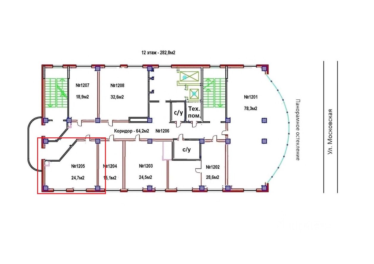 В здании имеется два лифта, приточно-вытяжная вентиляция, кабинет оборудован кондиционерами, отвечает нормам пожарной безопасности.