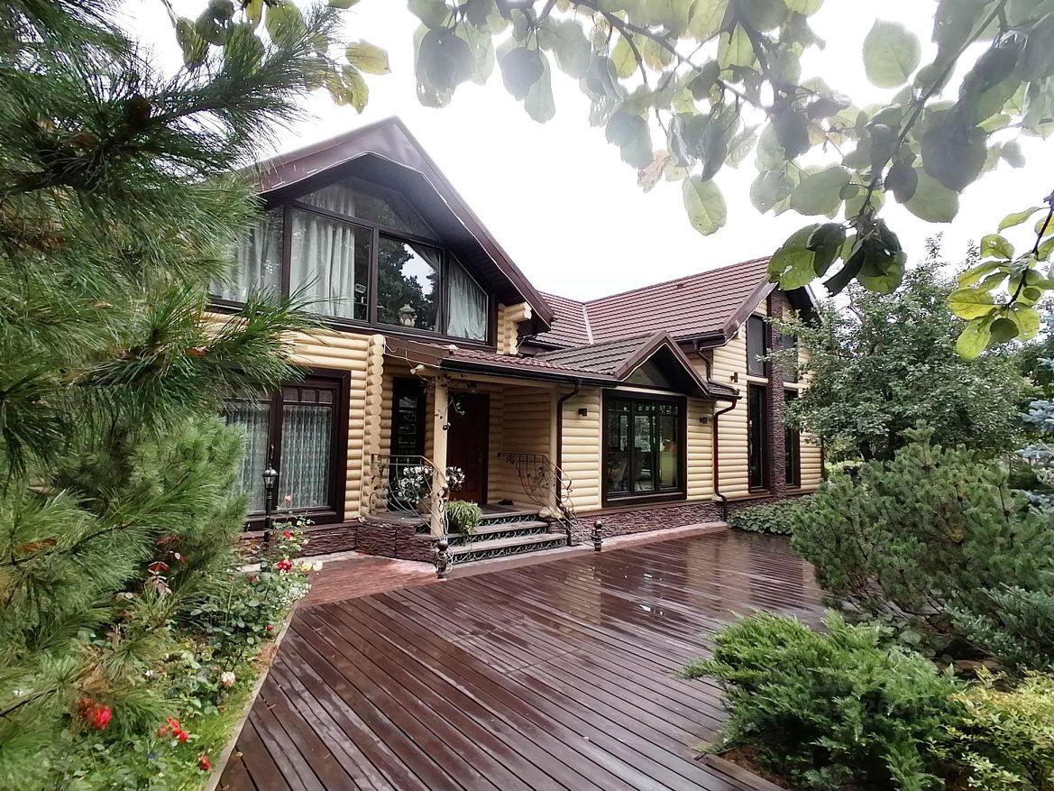 Эксклюзивное предложение! Загородная усадьба в селе Троицкое, в 10 км от МКАД, в непосредственной близости от Клязьминского водохранилища. На живописном участке 29 соток расположены: - основной двухуровневый бревенчатый дом в стиле шале площадью 280 кв.м, - хозяйственное строение 170 кв.м. с гаражом на 2 машины, навесом на 2 машины, а также котельной, генераторной, мастерской и двухкомнатной квартирой для персонала, - два отдельно стоящих строения: тренажерный зал (37 кв.м) и оборудованная для зимнего отдыха беседка (50 кв.м) с камином, отдельно пристроенной кухней с мангалом, газовым грилем (пр-во Канада), доменной печью, печью с теплым топчаном и коптильней. Благоустроенный участок с продуманным ландшафтным дизайном. На участке разбит большой сад с фруктовыми деревьями, березовая роща, обустроена детская площадка, баскетбольная площадка, сделаны цветники и клумбы с декоративными деревьями и кустарниками, два фонтана, мини-огород. Дорожки в саду и открытые террасы отделаны доской из лиственницы, установлены декоративные светильники. На придомовой террасе оборудовано место для приема солнечных ванн (солярий) с фонтаном и джакузи. Участок очень тихий, нет шума от дороги и соседей, по периметру огорожен высоким забором и не просматривается с соседних домов. Заезд на участок возможен с двух противоположных сторон, при этом с каждой стороны оборудованы парковки вместимостью до 5 машин. Главным украшением усадьбы безусловно является основной дом, сочетающий в себе функциональность планировки и стильный интерьер, каждая деталь которого продумана до мелочей и подчеркивает высокий статус владельца дома. В отделке использовано много натурального камня, ценных пород дерева и кованых изделий. Большая площадь остекления делает внутреннее пространство дома очень светлым и уютным. Дом полностью меблирован дорогой и изысканной мебелью. В доме 3 спальные комнаты, кабинет с панорамными окнами и респектабельной обстановкой, большая кухня-столовая, отдельная обеденная зона, гладильная, две гардеробных, полноценная русская баня на 4-6 человек с купелью и помывочной. Особое впечатление оставляет просторная гостиная 80 кв.м. с высоким (до 7 метров) потолком и панорамными окнами. Внутри гостиной - камин, отделанный сирийским ониксом серо-зеленого цвета, бильярдная зона (12 футовый биллиард), домашний кинотеатр и караоке, фитостена размером 5х0,7 м. и панно из мозаики, 3-х метровая барная стойка. Из гостиной сделан выход на открытую террасу-патио. Усадьба обеспечена всеми коммуникациями: электричество 30 кВт, газ 160 кВт, центральные водопровод и канализация. Дополнительно оборудована скважина. Установлены два газовых котла по 74 кВт и электрокотел. Подведен скоростной интернет и созданы комфортные условия для работы онлайн. Установлены охранная сигнализация и видеонаблюдение. Тревожная кнопка ГНР. Идеальное место! Идеально обустроенный для загородной жизни дом!
