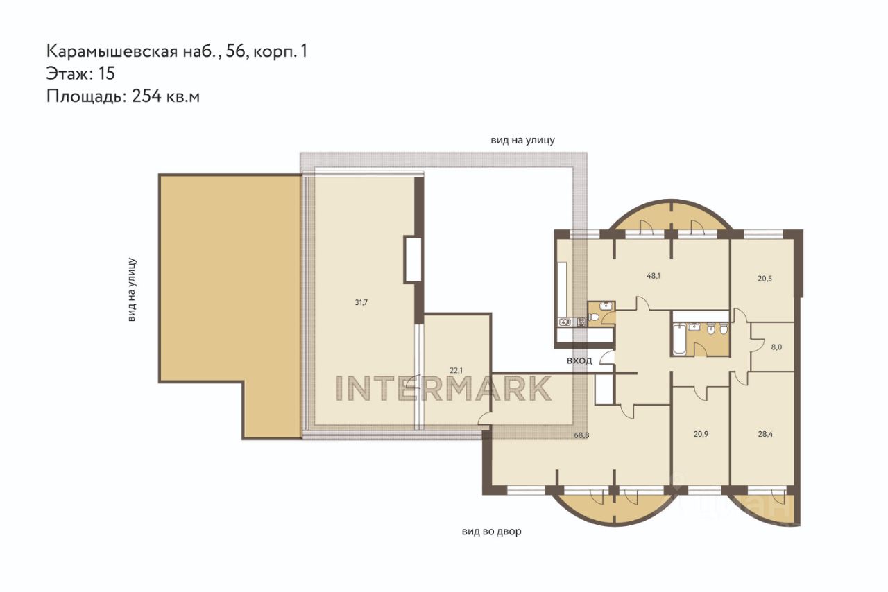 ID 64616: Эксклюзив. Только в Intermark. Видовой трехсторонний пентхаус в современном доме бизнес-класса на Карамышевской набережной с шикарной панорамой на столицу и Москву-реку. Жилое пространство комфортно спланировано и включает просторную гостиную, кухню, зону столовой, 3 спальни, постирочную комнату и кладовые помещения. Главная особенность квартиры - большой круглогодичный зимний сад и роскошная открытая терраса с впечатляющими видами на Живописный мост, Гребной канал и бескрайнюю зелень Серебряного бора. Площадь пентхауса указана без учета террасы и зимнего сада, квартира занимает один уровень.