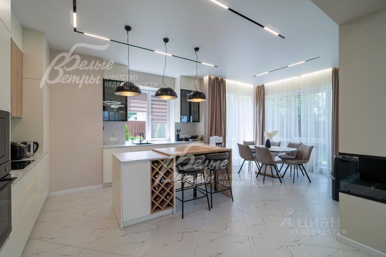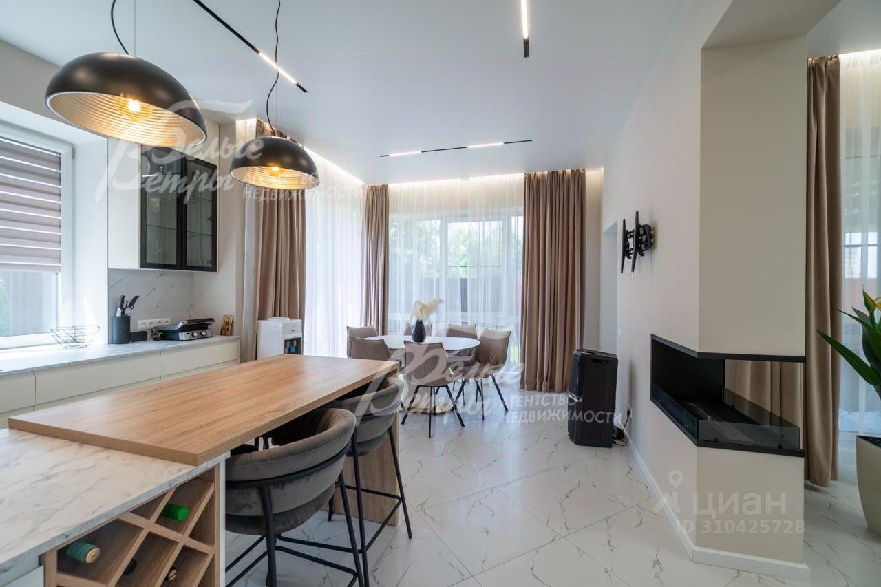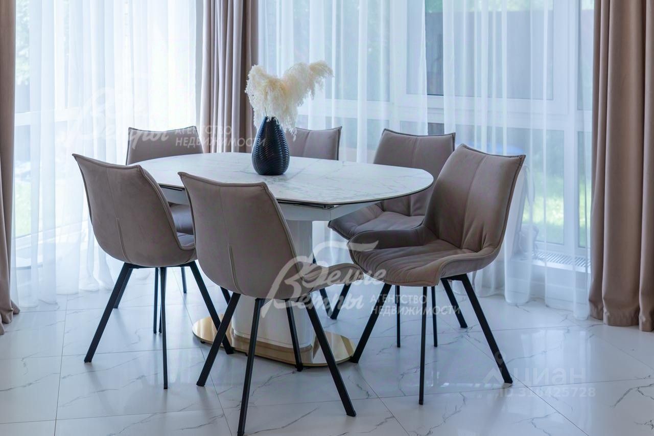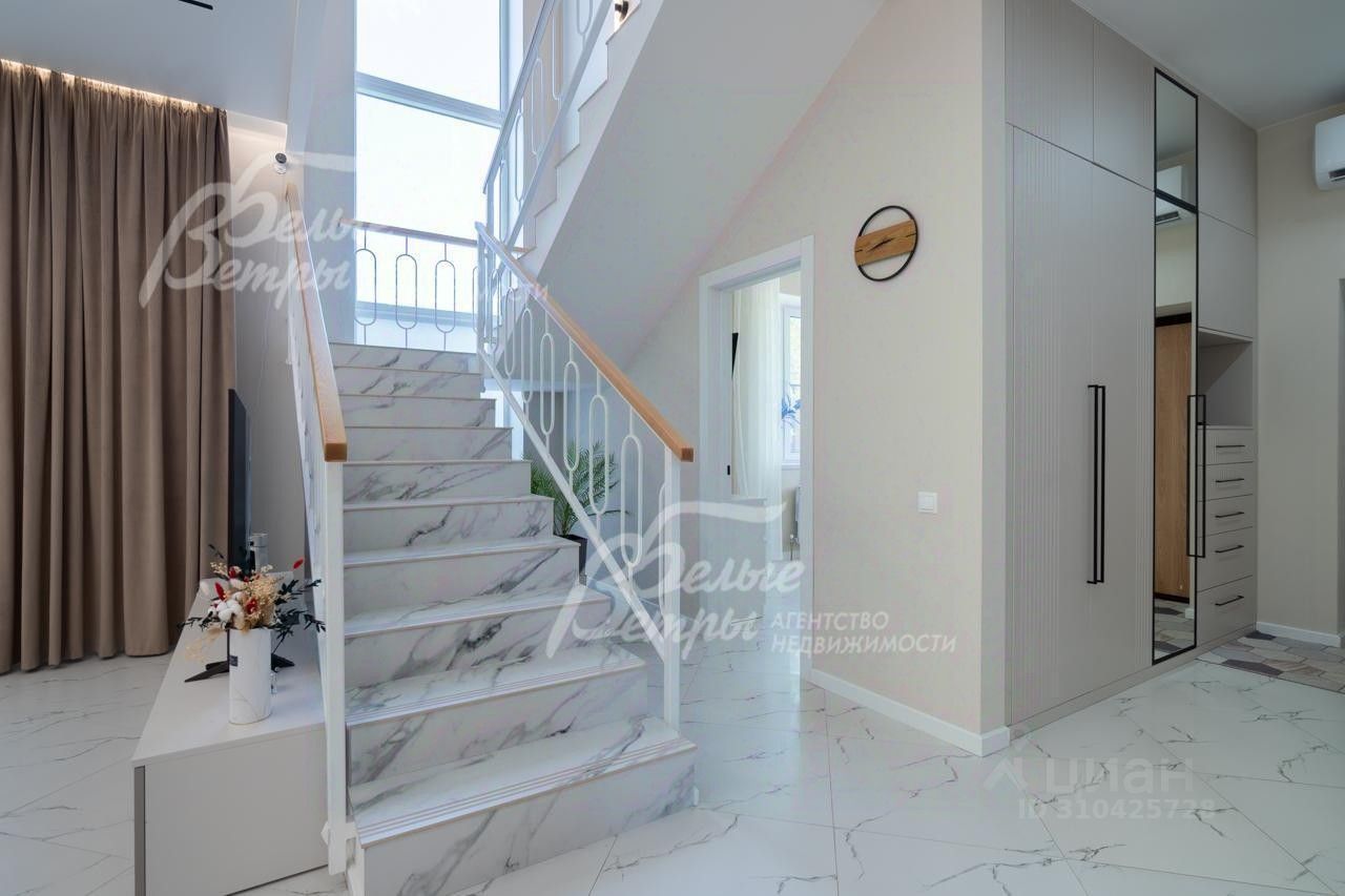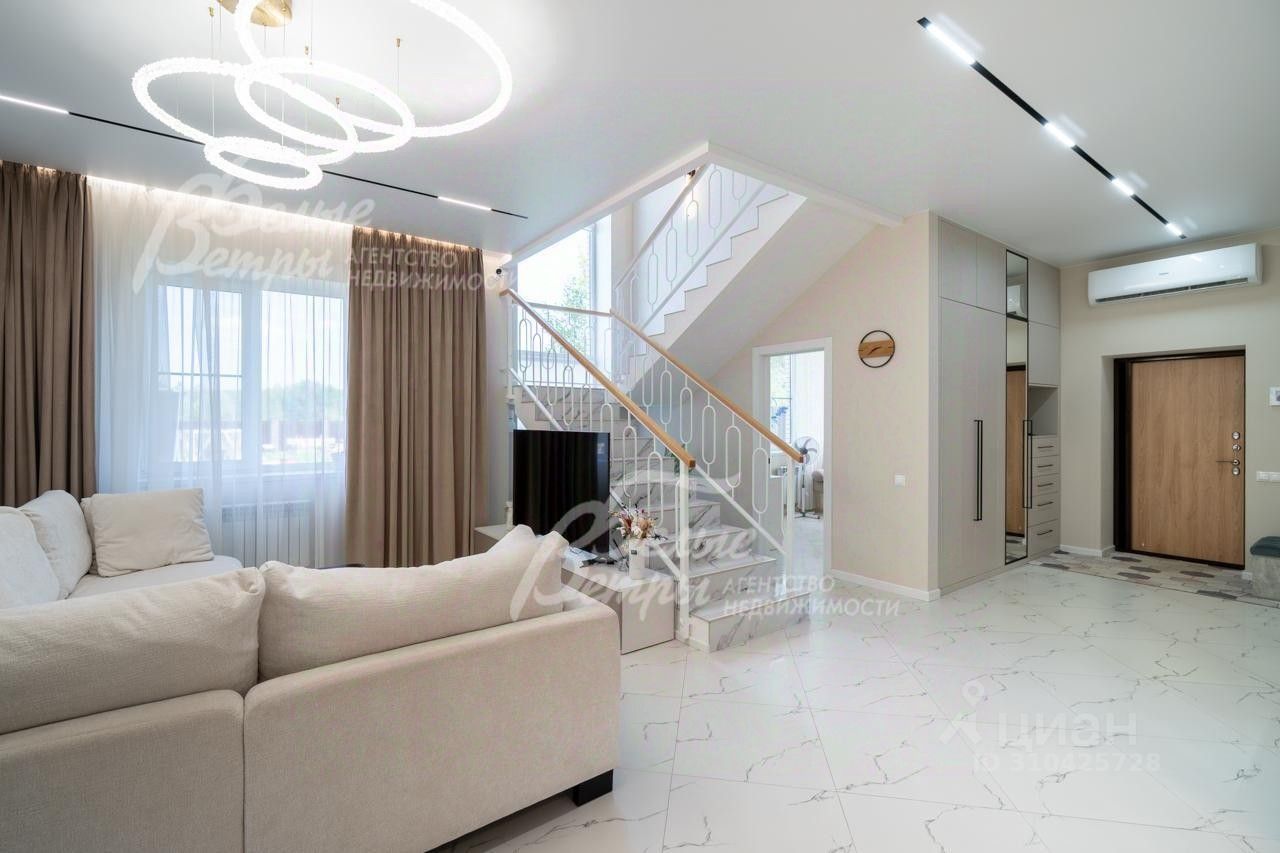Описание внутренней отделки: выполнена отделка в современном стиле минимализм в светлых матовых тонах. На стенах обои (зарубежные) и краска. На полу ламинат, керамогранит. Монолитная лестница отделана керамогранитом (ширина 1 метр). Натяжные потолки с разными сценариями освещения (более 7 сценариев в каждой комнате). Установлена вся сантехника: унитазы CRETO (Италия), инсталляции AM PM (Германия), раковина Melana (на 1 этаже). На первом этаже везде теплый пол (водяной), на 2 этаже - в санузлах. Электрика АВВ. Межкомнатные двери скрытого монтажа. Встроенная система для обуви PULSE..