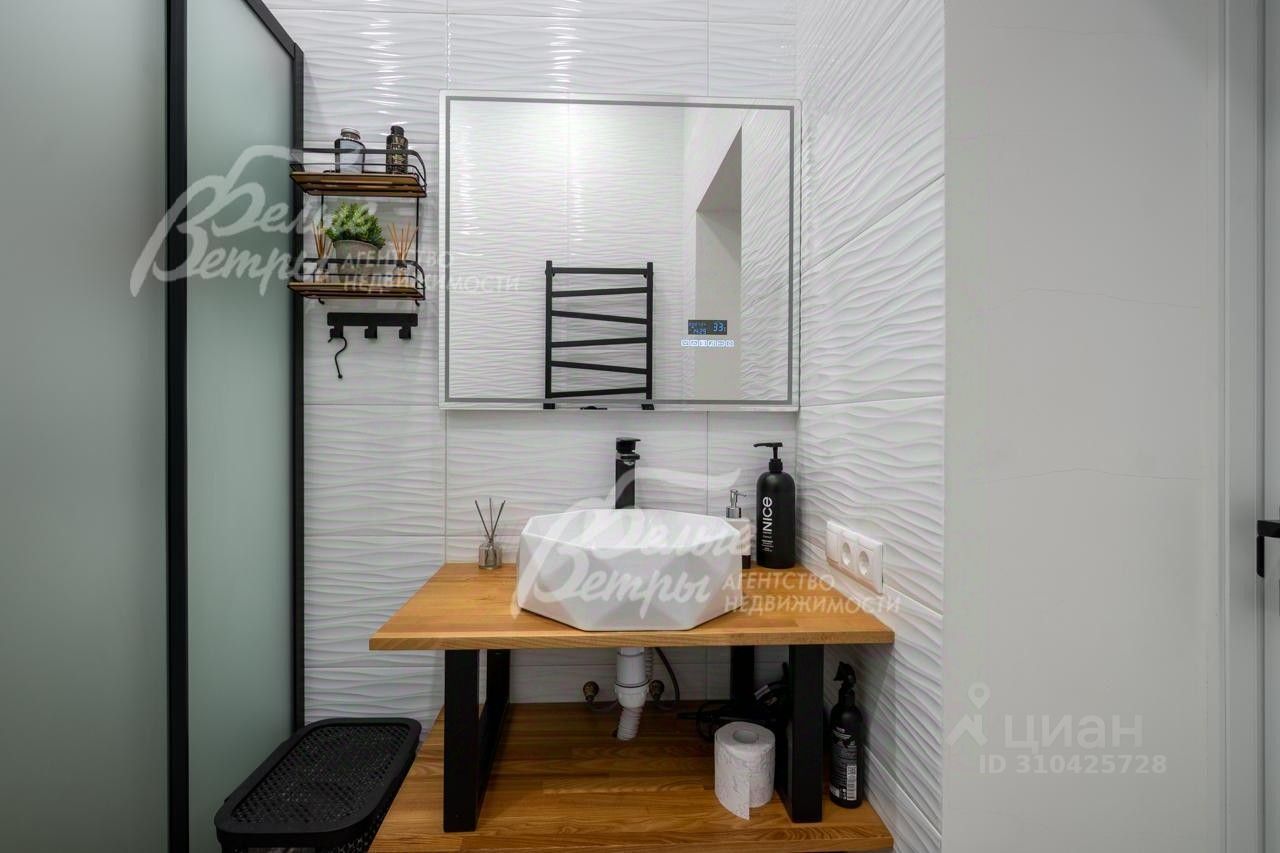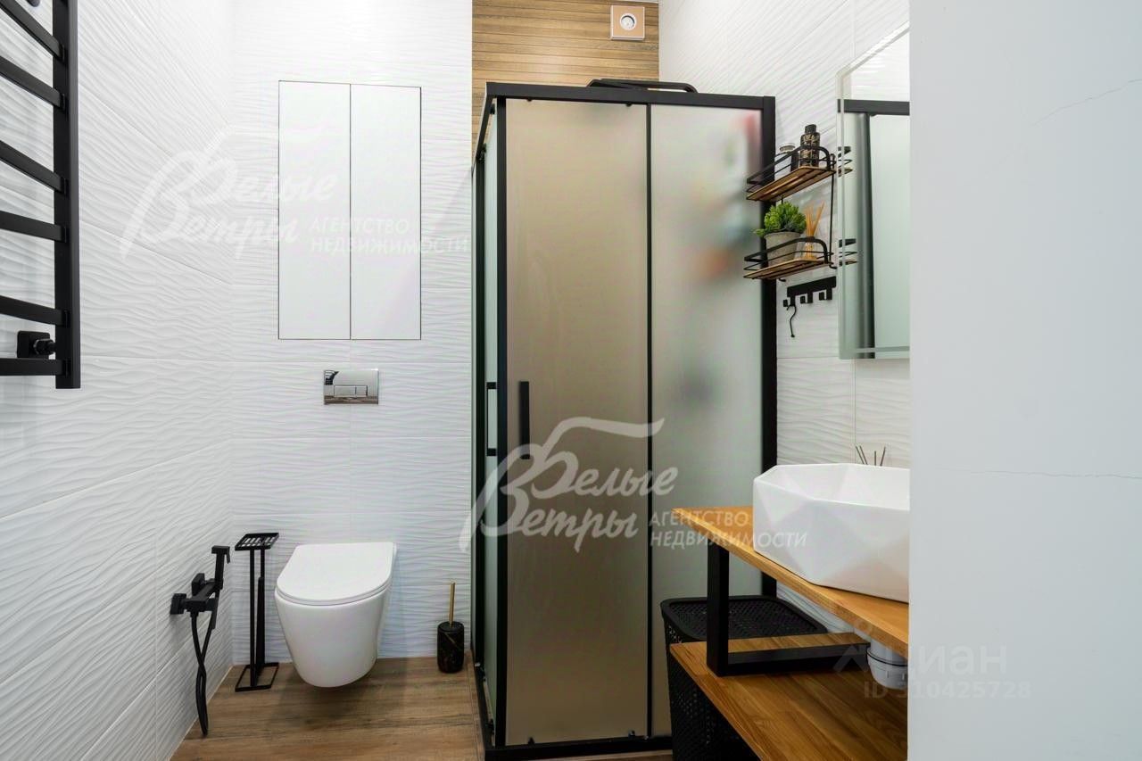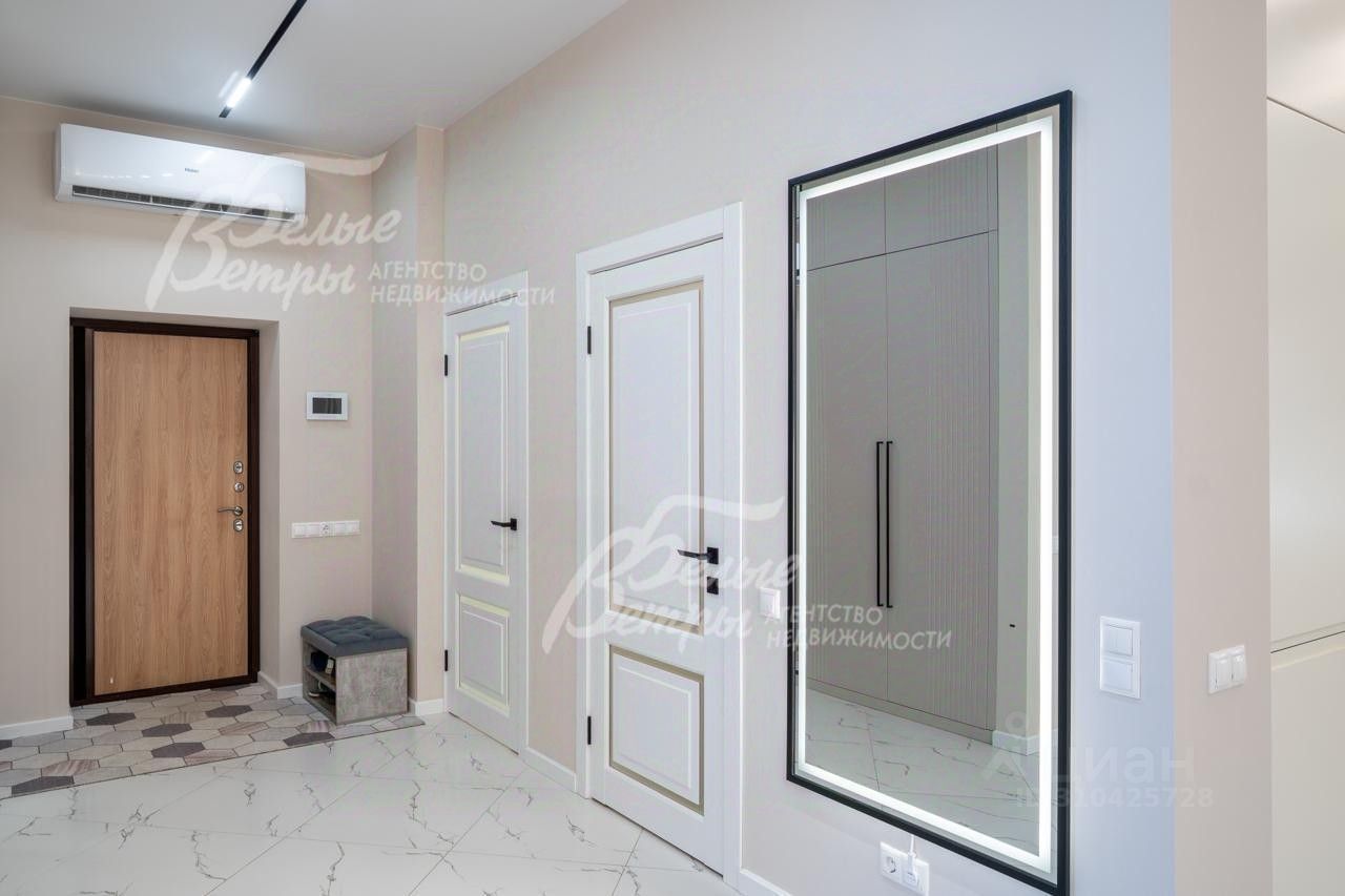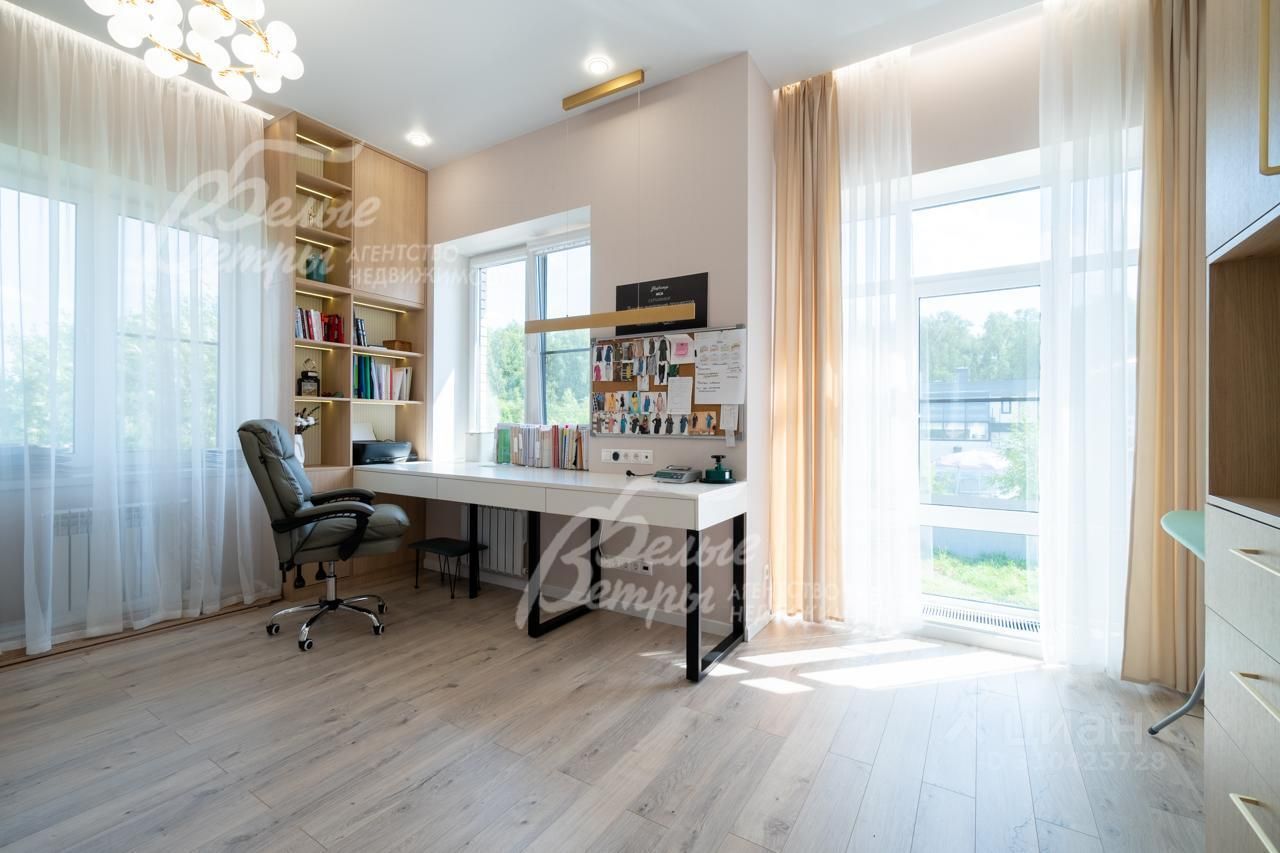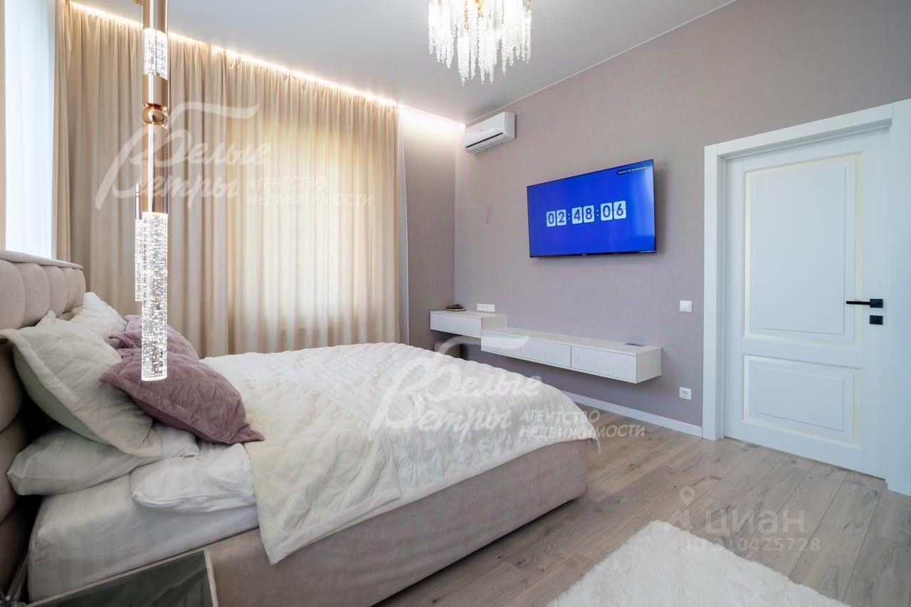 Описание внутренней отделки: выполнена отделка в современном стиле минимализм в светлых матовых тонах. На стенах обои (зарубежные) и краска. На полу ламинат, керамогранит. Монолитная лестница отделана керамогранитом (ширина 1 метр). Натяжные потолки с разными сценариями освещения (более 7 сценариев в каждой комнате). Установлена вся сантехника: унитазы CRETO (Италия), инсталляции AM PM (Германия), раковина Melana (на 1 этаже). На первом этаже везде теплый пол (водяной), на 2 этаже - в санузлах. Электрика АВВ. Межкомнатные двери скрытого монтажа. Встроенная система для обуви PULSE..