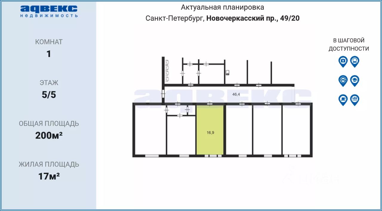 ID: 1787409 Продается комната в коммунальной квартире в центре Санкт-Петербурга! Комната светлая и уютная. Удачное расположение: всего в 5 минутах ходьбы до станции метро Новочеркасская. В районе множество продуктовых магазинов, таких как ''Пятерочка'', ''Магнит'' и ''Дикси'', а также школы и детские сады для удобства семей с детьми. Двор спокойный и зеленый, в нем есть детская площадка. В непосредственной близости находится прекрасный парк с разнообразными спортивными площадками и современной детской площадкой. Примерно в 10 минутах пешком — набережная реки Невы, где можно насладиться прогулками на свежем воздухе. На городском транспорте до Невского проспекта можно добраться всего за 10-15 минут. К важным преимуществам комнаты и дома относятся: Высота потолков 2,75 метра, Увеличенные окна, Толстые стены и отличная шумоизоляция.