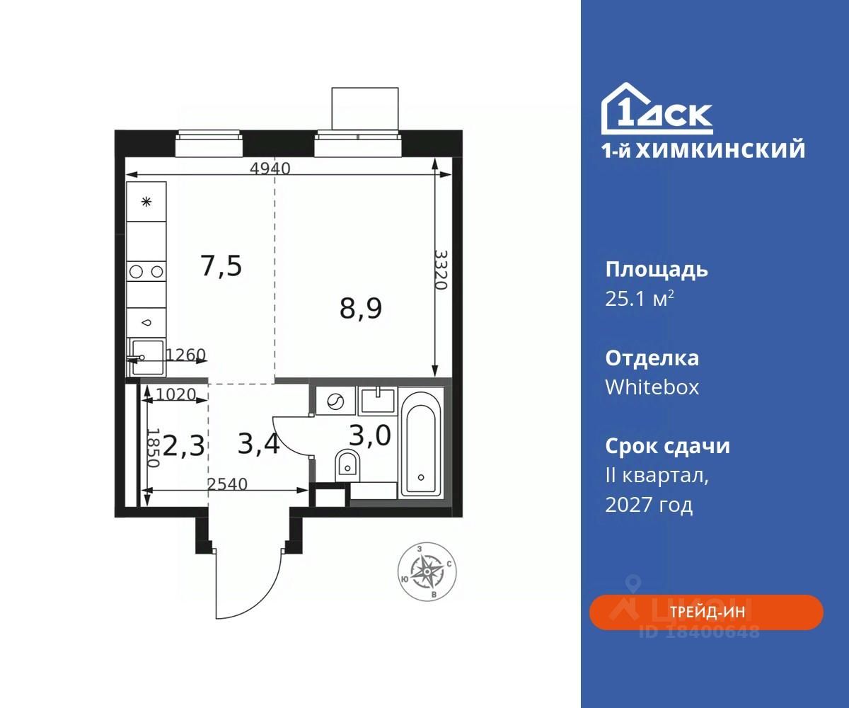Прямая продажа от застройщика! Жилой Комплекс класса Комфорт. Продаётся студия номер 452 общей площадью 25.1 кв.м на 4-м этаже 14 этажного дома. Отделка Whitebox.