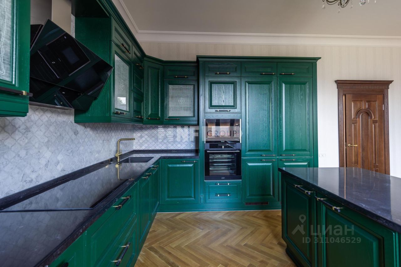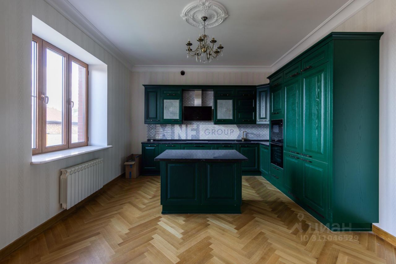 Цоколь: спортивный зал 44,5 м2, постирочная 10,8 м2. склад для хранения15,0 м2, комнаты 23,2 и 42,2 м2, 1 этаж: прихожая, зал 42,0 м2, кухня из массива со встроенной техникой и островом 44,5 м2, детская 23,5 м2, комната 12,5 м2, с/у, 2 этаж: мастер-спальня 44,5 м2 с с/у, 2 детских спальни 22,5 и 19,5 м2 с с/у и гардеробной 13,5 м2, 3 этаж: спальня 44,5 м2, служебная комната 14,5 м2, спальня 18,0 м2, с/у, кабинет 40,0 м2.