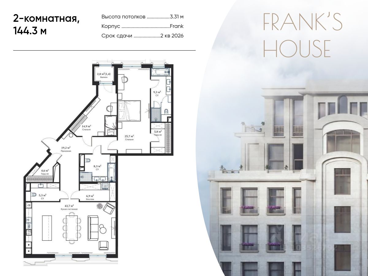 Представляем вашему вниманию Franks House - триумфальное возвращение любимого московского стиля модерн в классическом варианте и новом прочтении. Два потрясающих проекта: House Frank - реконструкция знаменитого торгового дома империи Франков начала прошлого века и House Falconnier - современное прочтение элитной недвижимости. Два самодостаточных шедевра, объединенные общей концепцией. House Frank и абсолютное новое, современное трехсекционное здание House Falconnier. В центре архитектурной композиции проекта - приватный зеленый внутренний двор с ландшафтным дизайном. Всего в комплексе запланировано 147 премиальных резиденций, площадью от 63 до 263 кв. метров с возможностью объединения. На первых этажах расположены квартиры с частными палисадниками, обрамленными живой изгородью, верхние же этажи занимают просторные пентхаусы с простыми углубленными террасами и панорамным остеклением, дающие возможность любоваться историческими и культурными памятниками Москвы, не выходя из дома. Подземный паркинг жилого комплекса располагает достаточным количеством мест для удобного размещения ваших транспортных средств. Территория Franks House находится под круглосуточной охраной и видеонаблюдением. Во всех резиденциях действует единая система обслуживания дома.