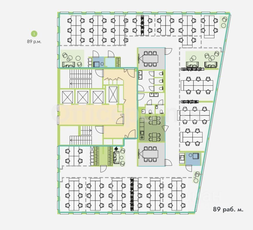 Офисные пространства в формате build-to-suit (bts) на 267 рабочих мест, смешанная планировка. Приточно-вытяжная система вентиляции, центральная система кондиционирования. В наличии подземная парковка (18 000 руб. в месяц за м/место).