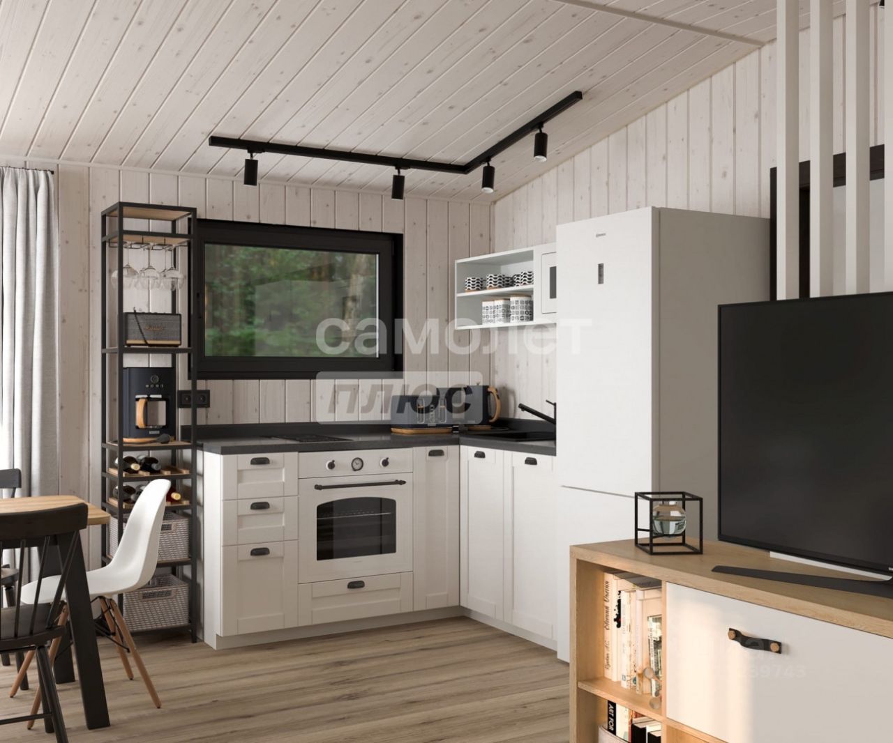 Про дома: Дом Барн - 55 м² Дом Афрейн 55 м² Этажность: 1 -- дома построены по каркасной технологии, подготовлены для внутренней отделки, -- вода и канализация подключены и заведены в подполье домов, -- трубы утеплены тепловым кабелем, -- крыша из качественного металлопрофиля, -- утепление - 200 мм, двухкамерные стеклопакеты, -- фундамент свайный, -- электричество подведено - 15 кв. (тарифы деревенские), -- газ по границе поселка.