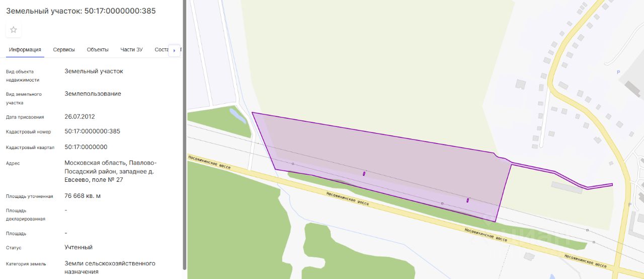 Кадастровый номер: 50:17:0000000:385 7,7 Га
