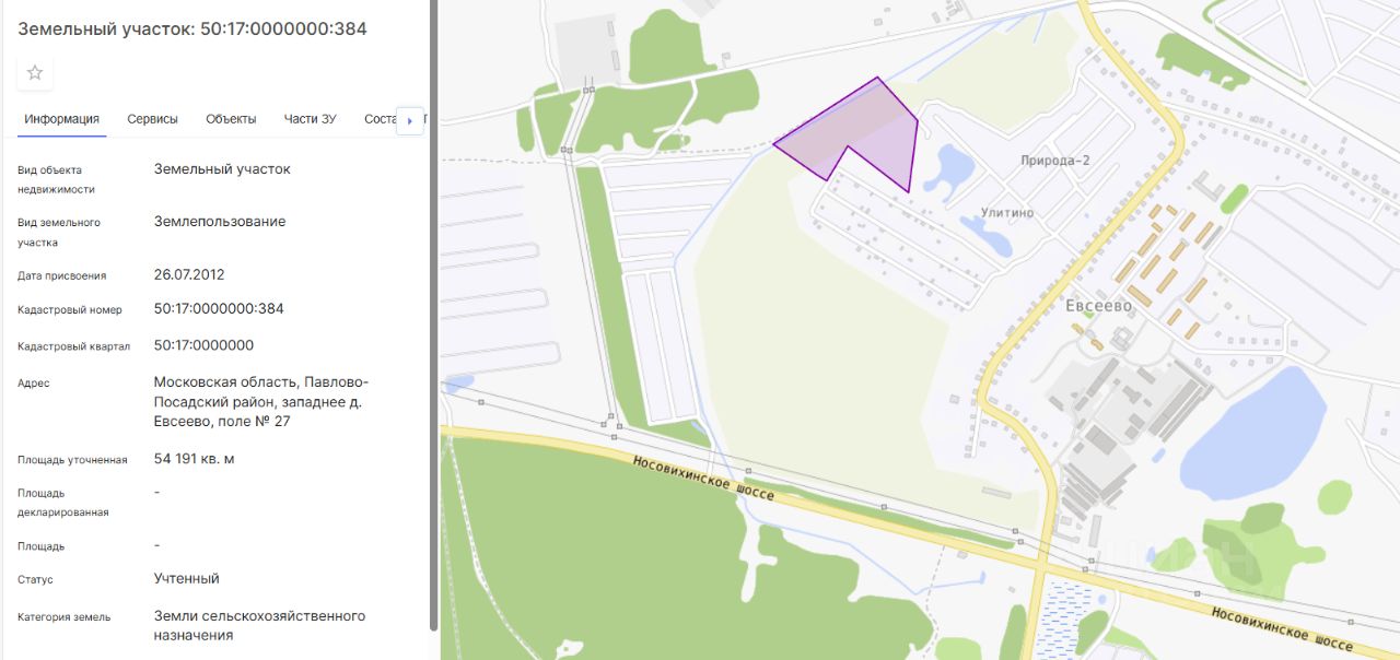 Кадастровый номер: 50:17:0000000:384 5,4 Га